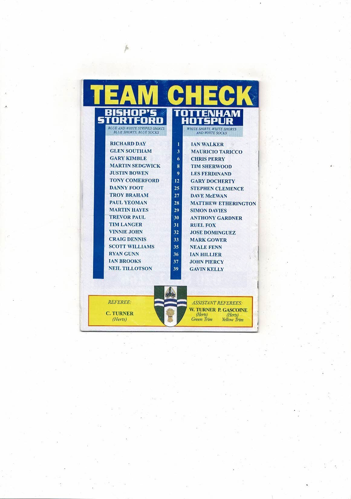 Bishops Stortford v Tottenham Hotspur Friendly Football Programme 2000/01