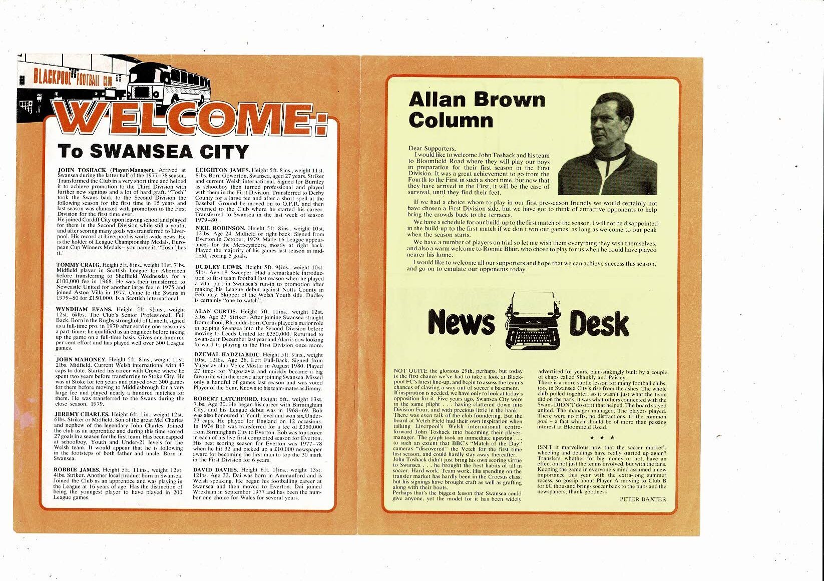 Blackpool v Swansea Friendly Football Programme 1981/82
