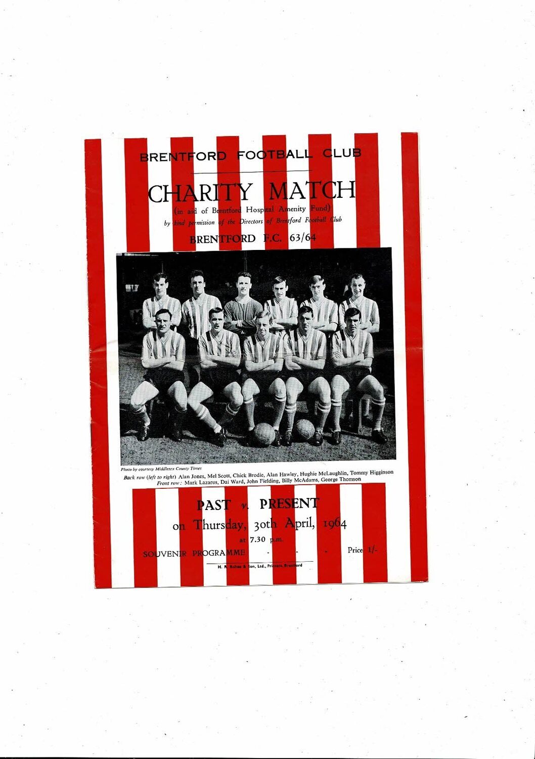 Brentford Past v Present Charity Match Football Programme 1963/64
