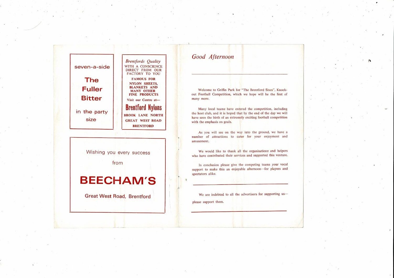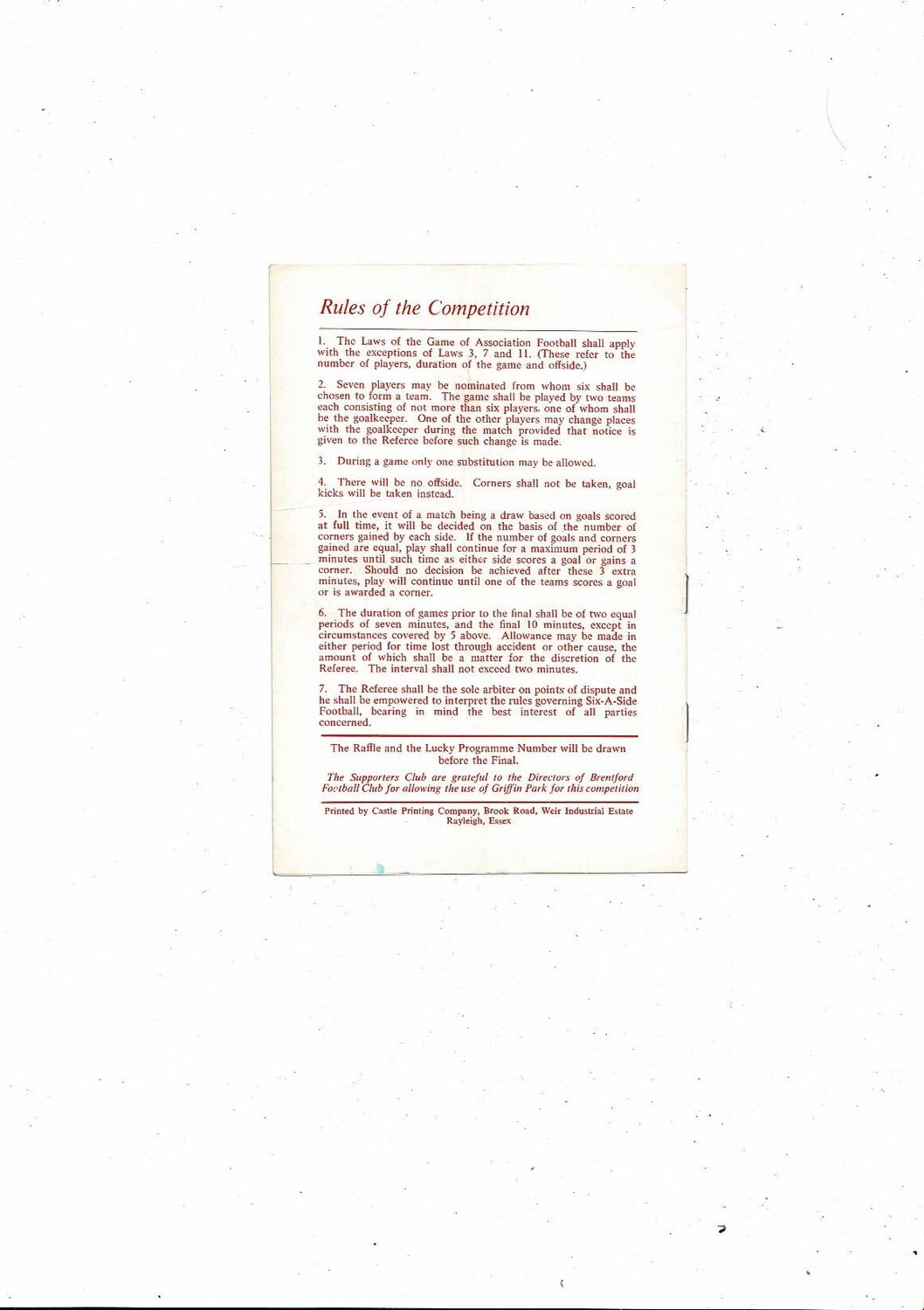 Brentford Sixes Knockout Competition Football Programme @ Brentford 1972/73