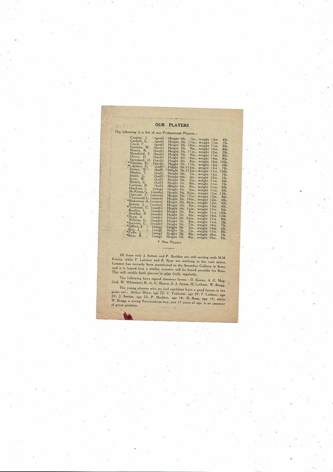 This original 4 page Football Programme is creased with a small hole worn on one of the folds, a couple of very tiny nic's & some staining. No handwriting. Please see scans.