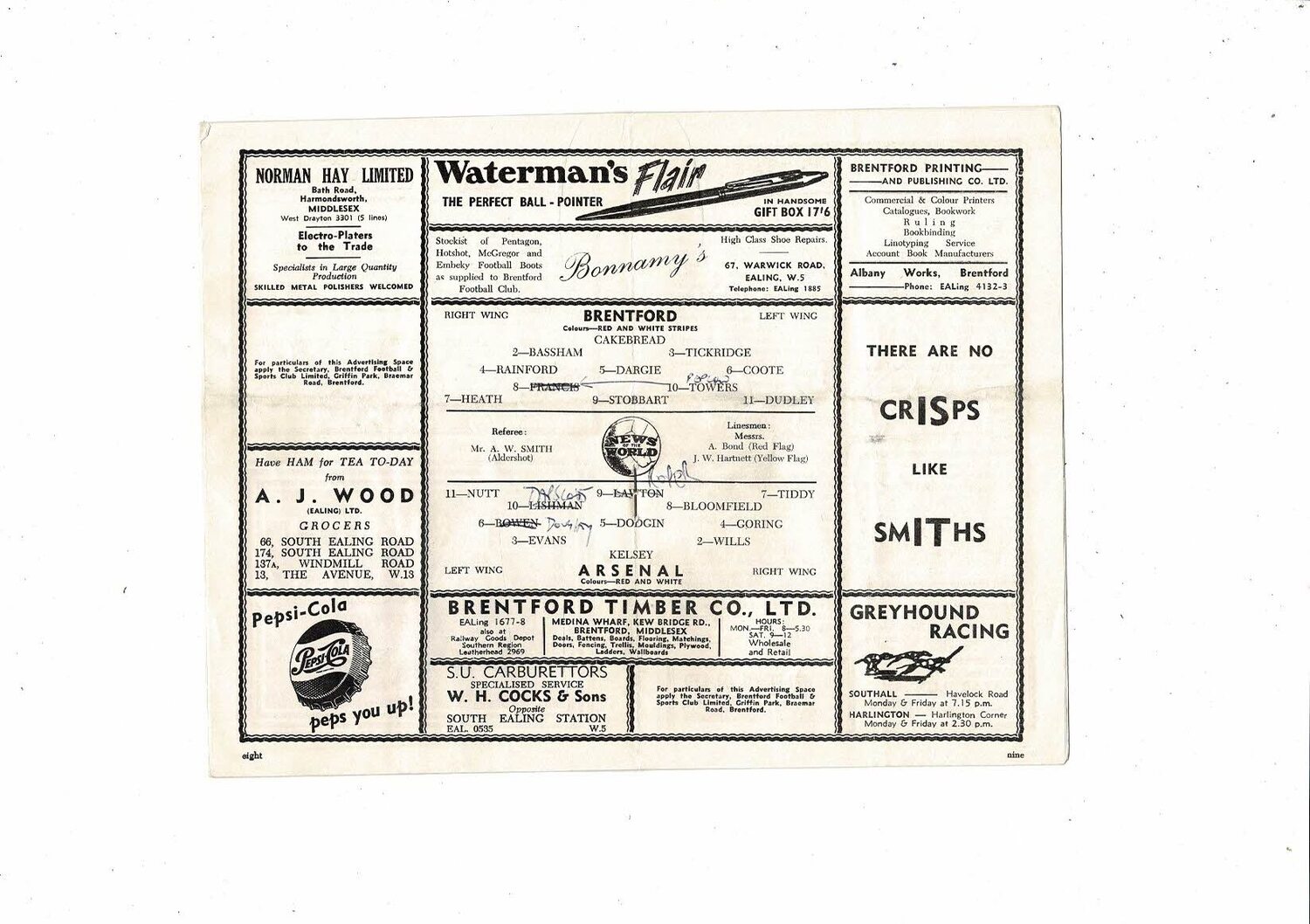 Brentford v Arsenal Floodlight Friendly Football Programme 1955/56