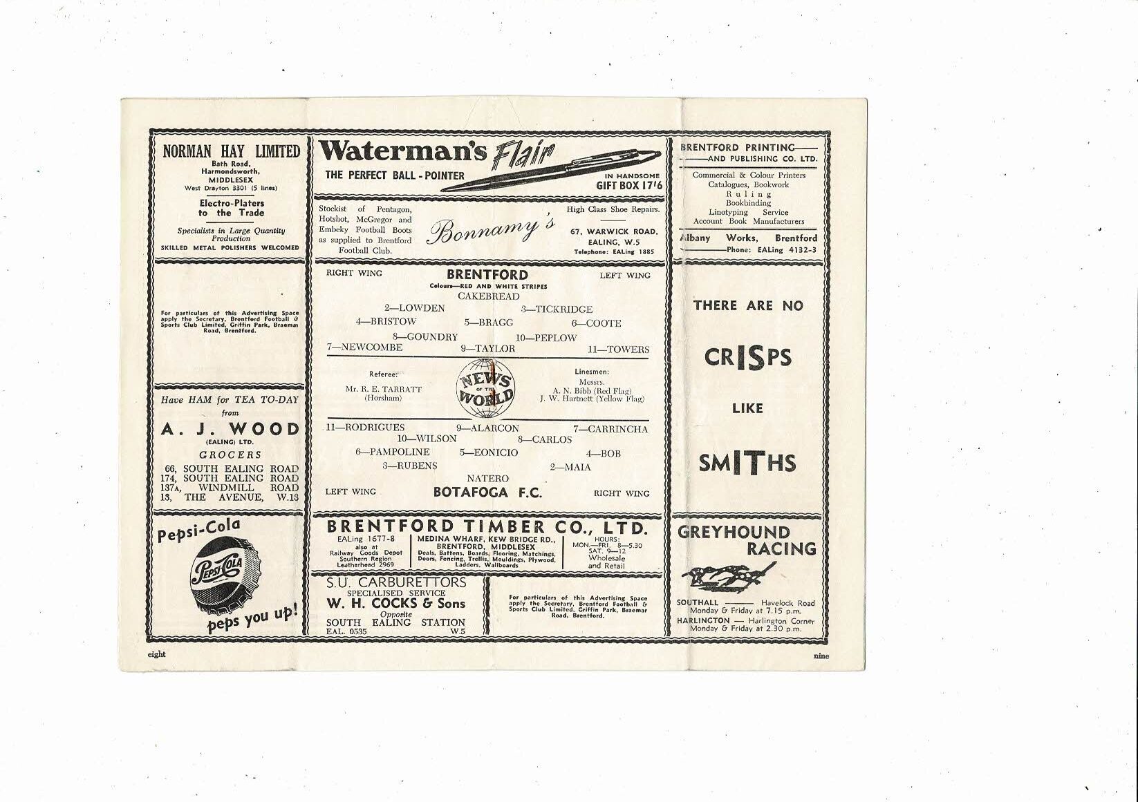 Brentford v Botafoga Friendly Football Programme 1955/56