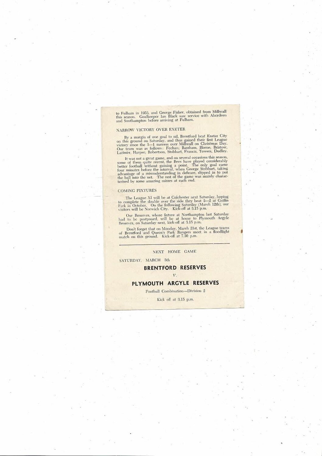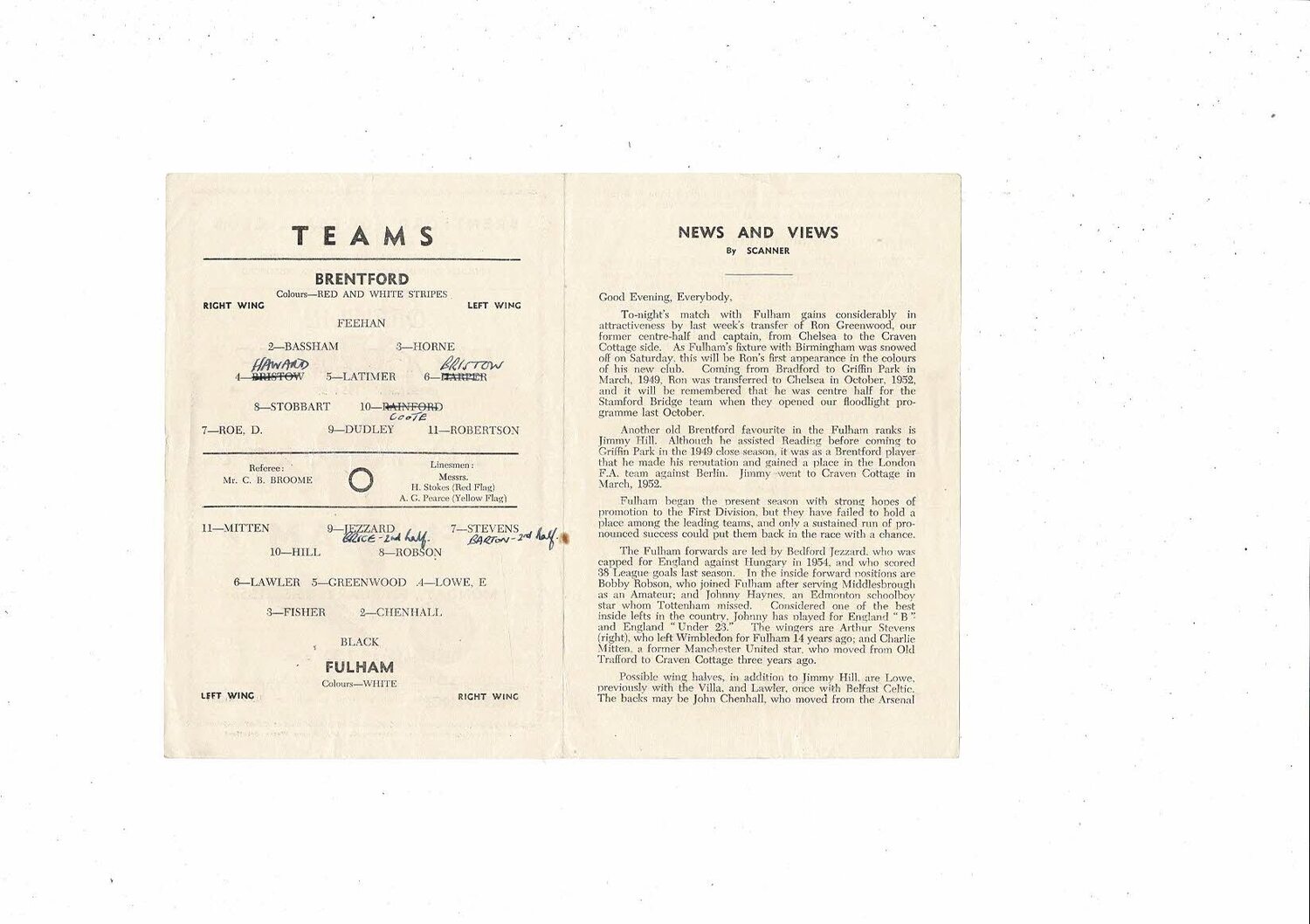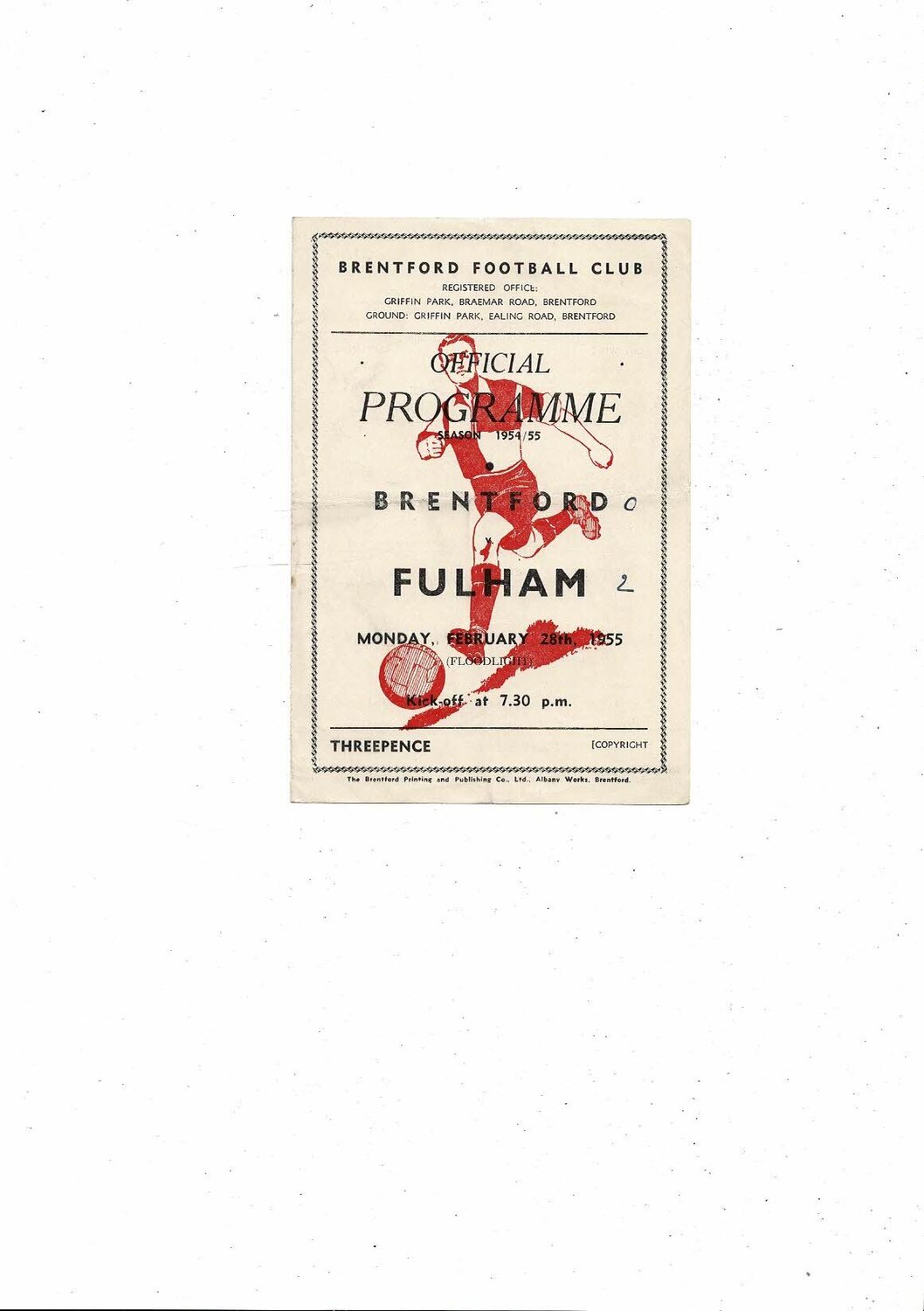 Brentford v Fulham Friendly Football Programme 1954/55