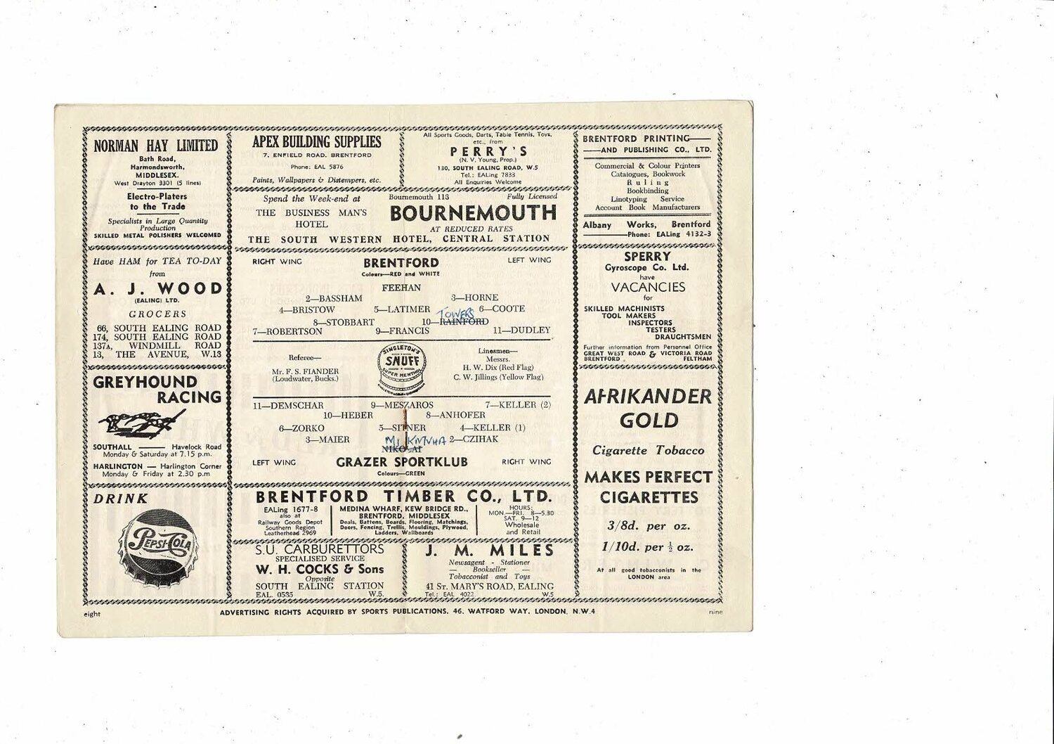 Brentford v Grazer Sportklub Friendly Football Programme 1954/55