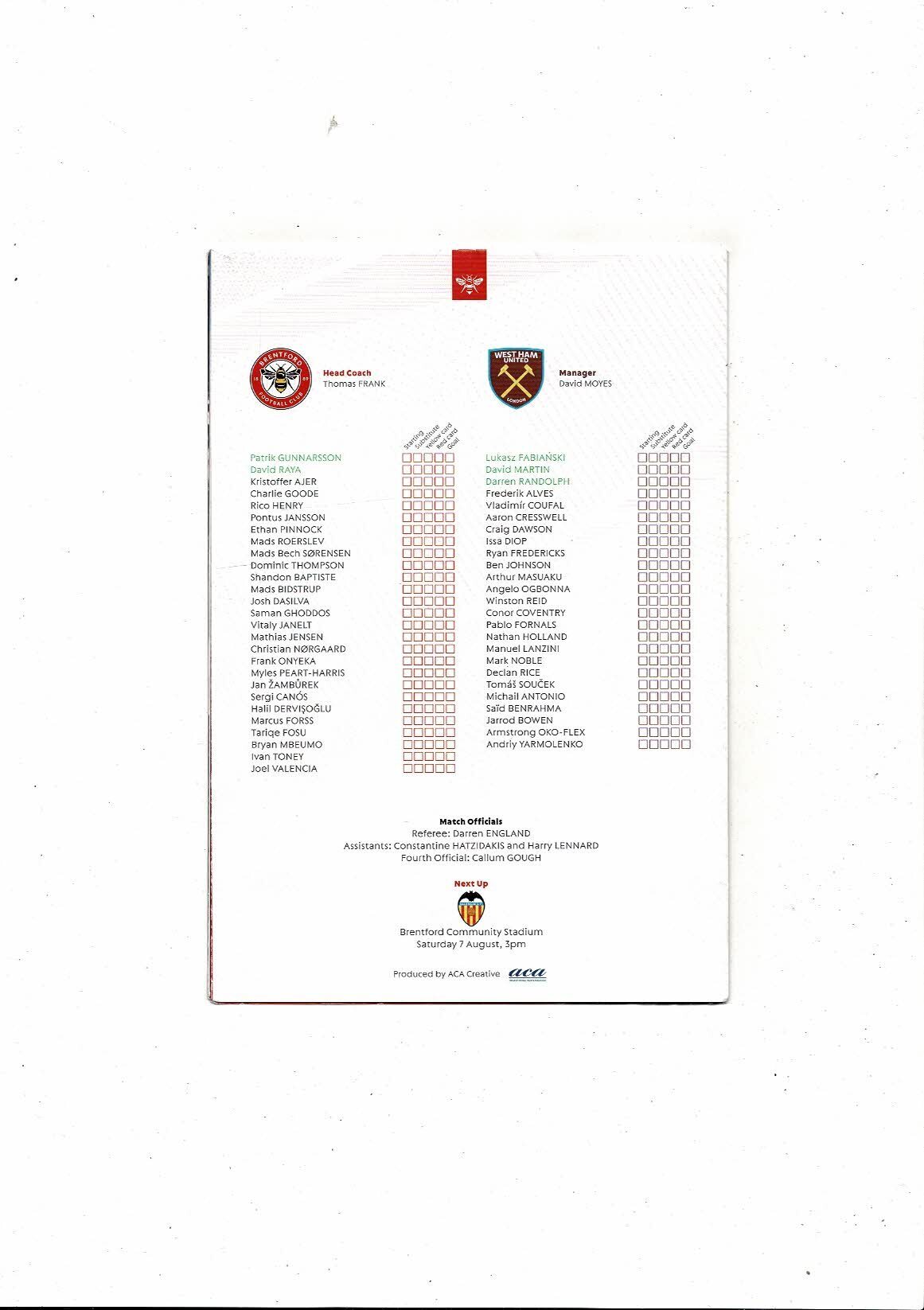 Brentford v West Ham United Friendly Football Programme 2021/22