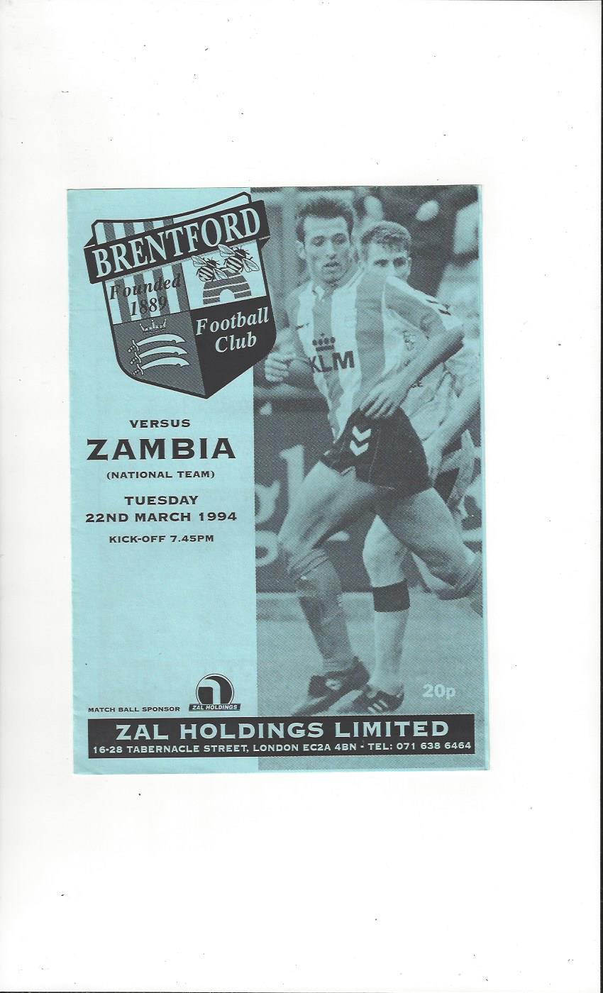 Brentford v Zambia National Team Friendly Football Programme 1993/94
