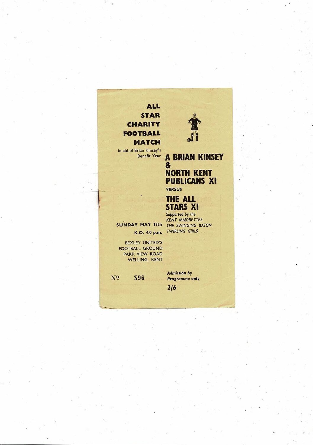 Brian Kinsley X1 v All Stars X1 Friendly Football Programme @ Bexley Utd 1960's