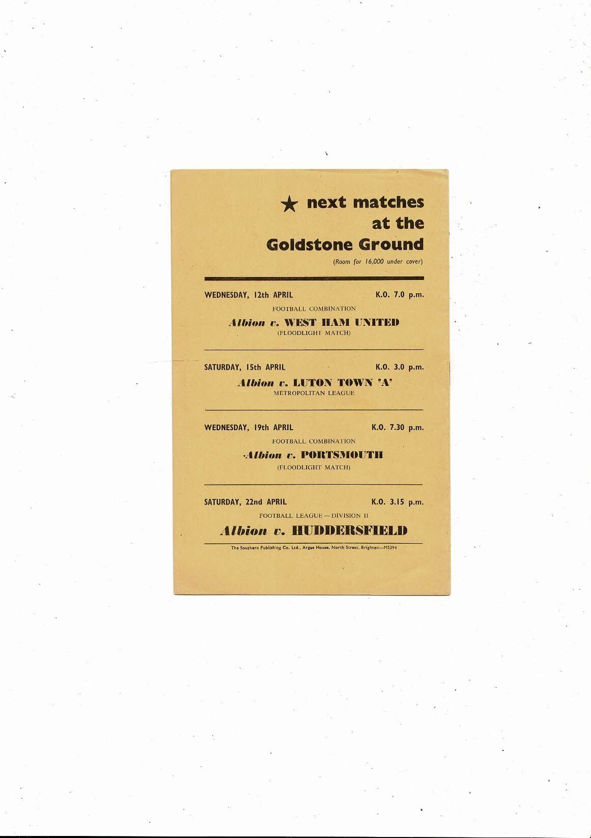 This Original Football Programme is slightly creased with a small tear at both ends of spine & staple just startng to rust. No handwriting.