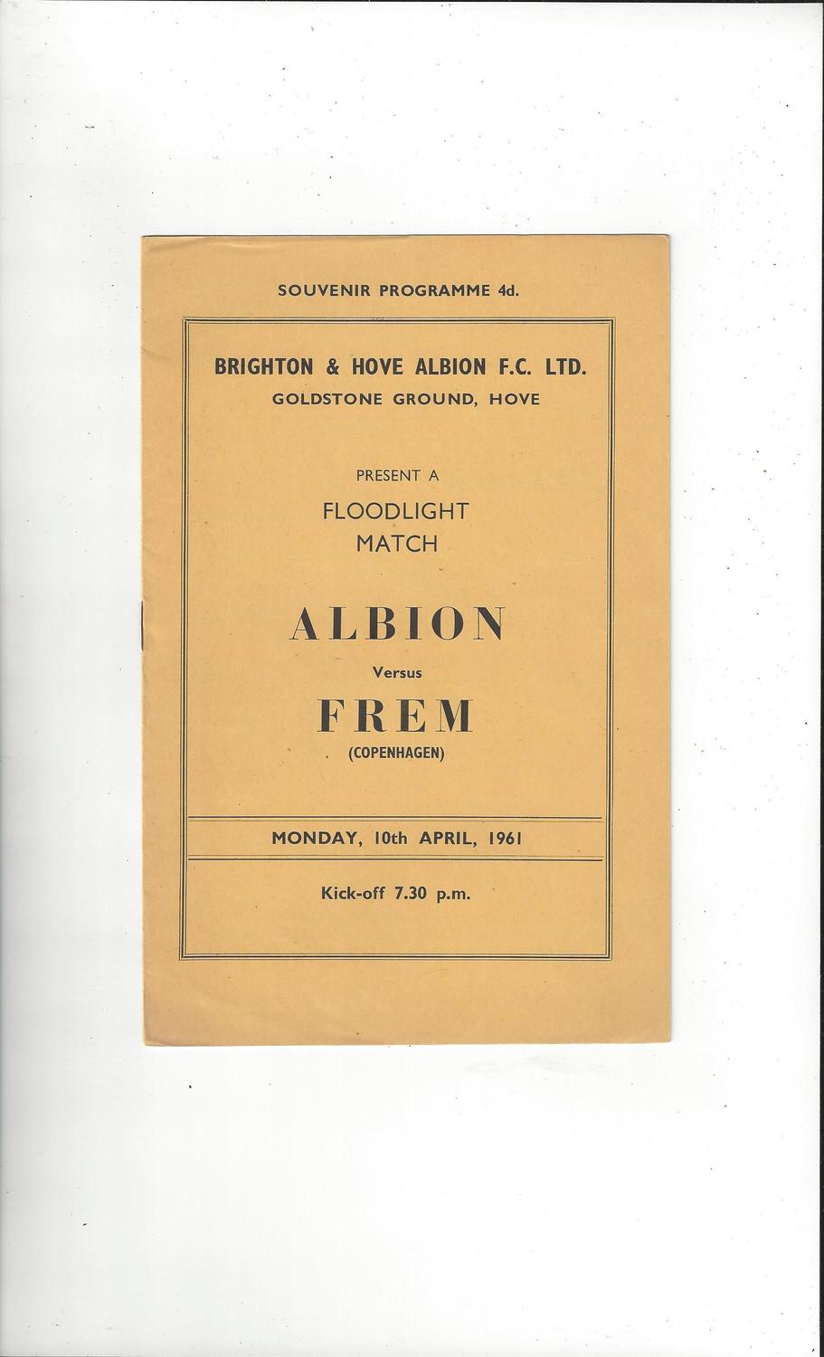 Brighton v Frem Friendly Football Programme 1960/61