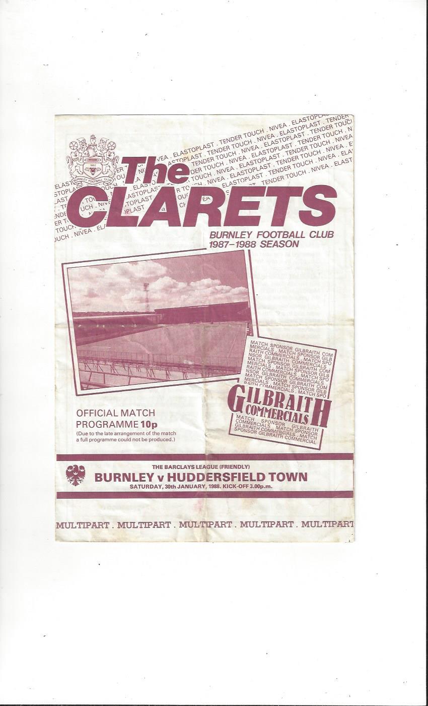 Burnley v Huddersfield Town Friendly Football Programme 1987/88