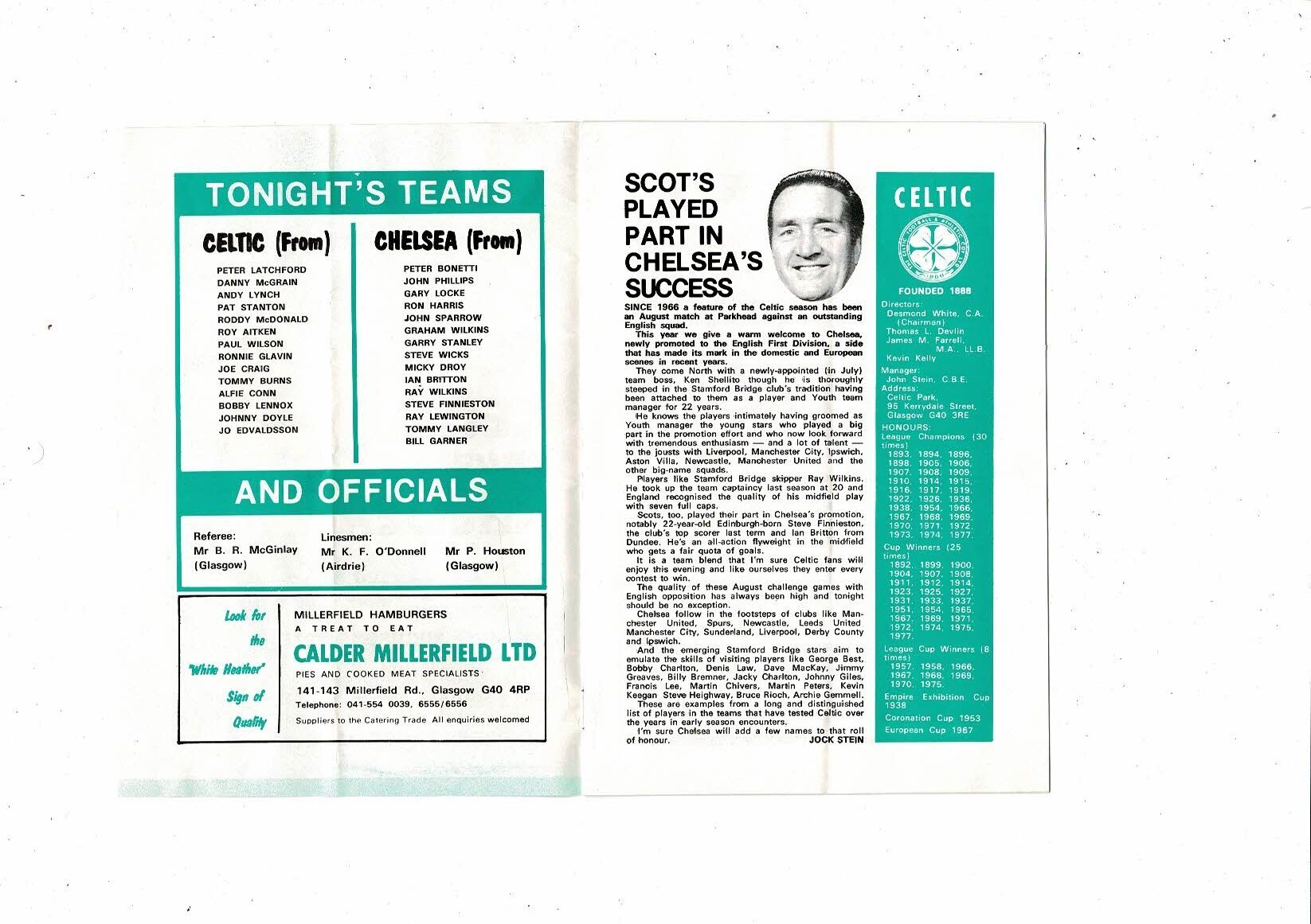 Celtic v Chelsea Friendly Football Programme 1977/78