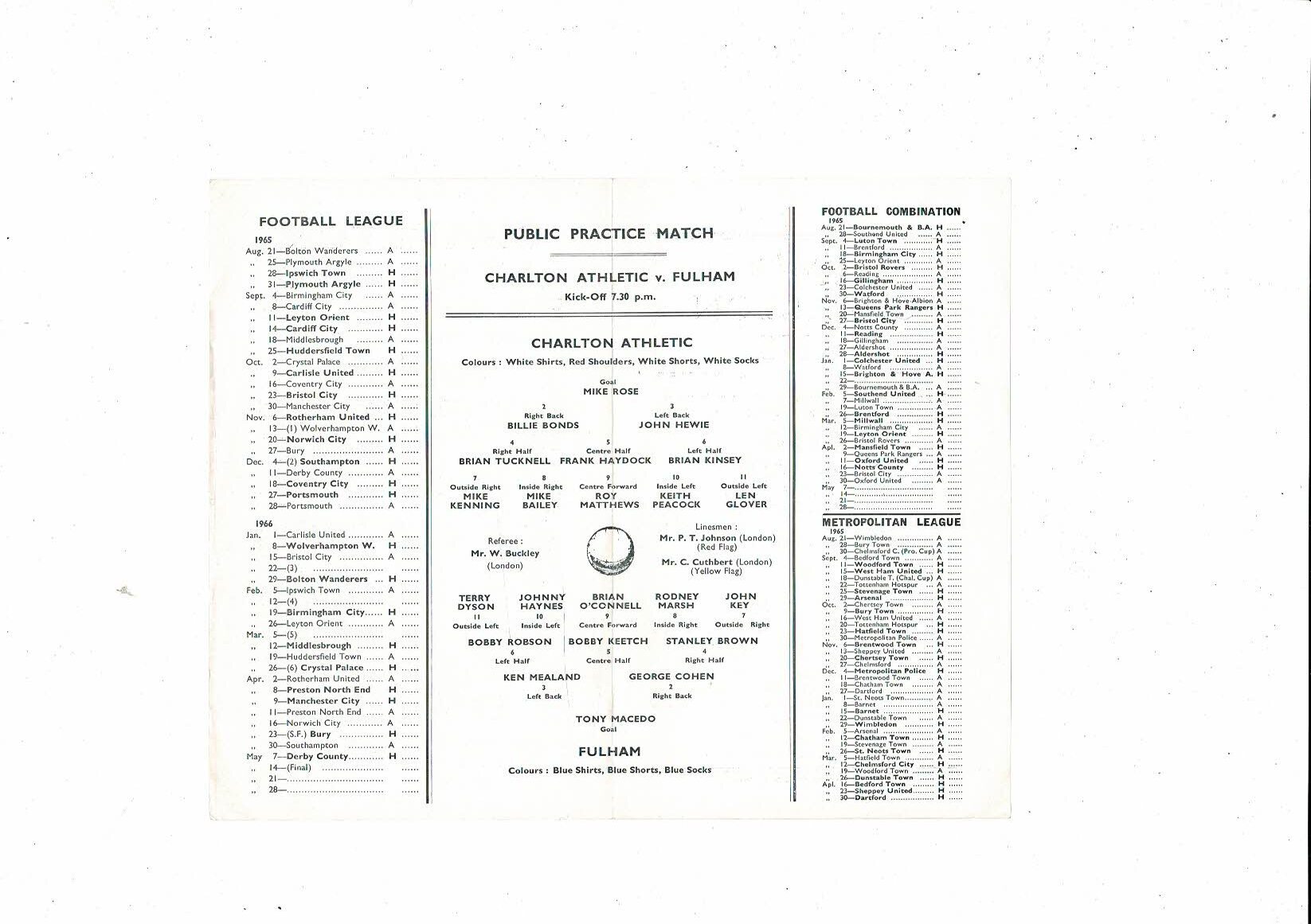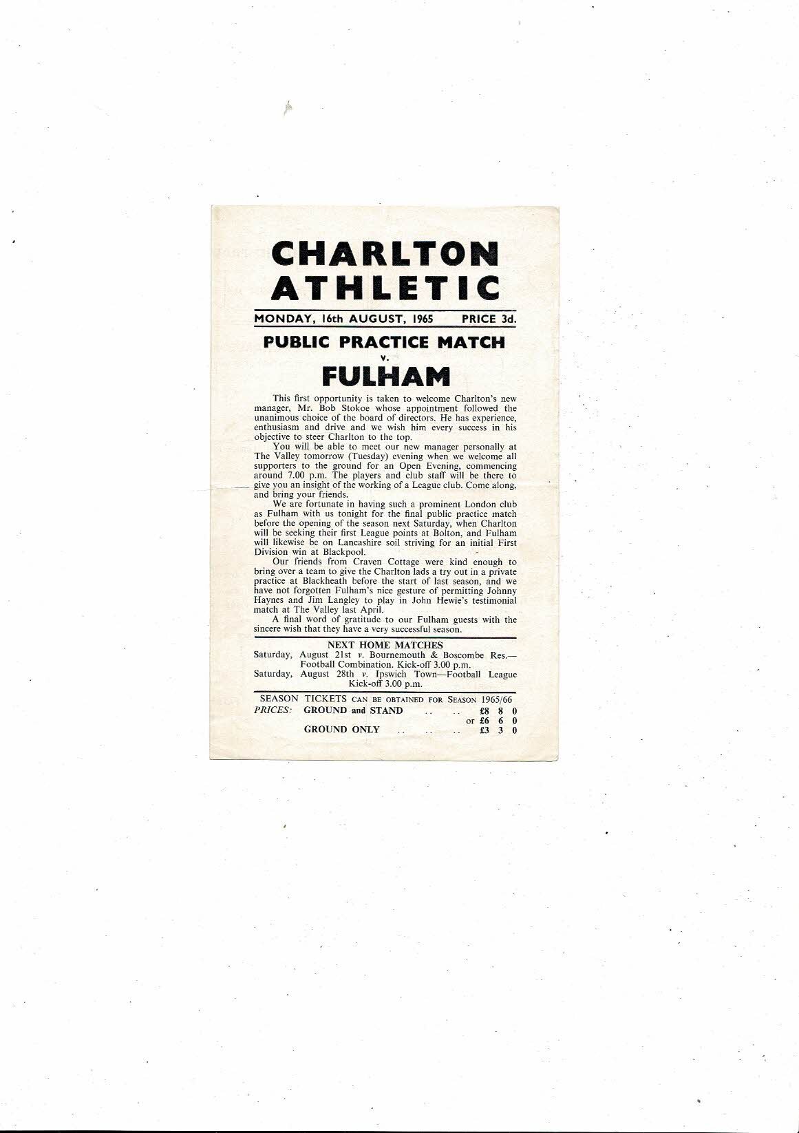 Charlton Athletic v Fulham Friendly Football Programme 1965/66