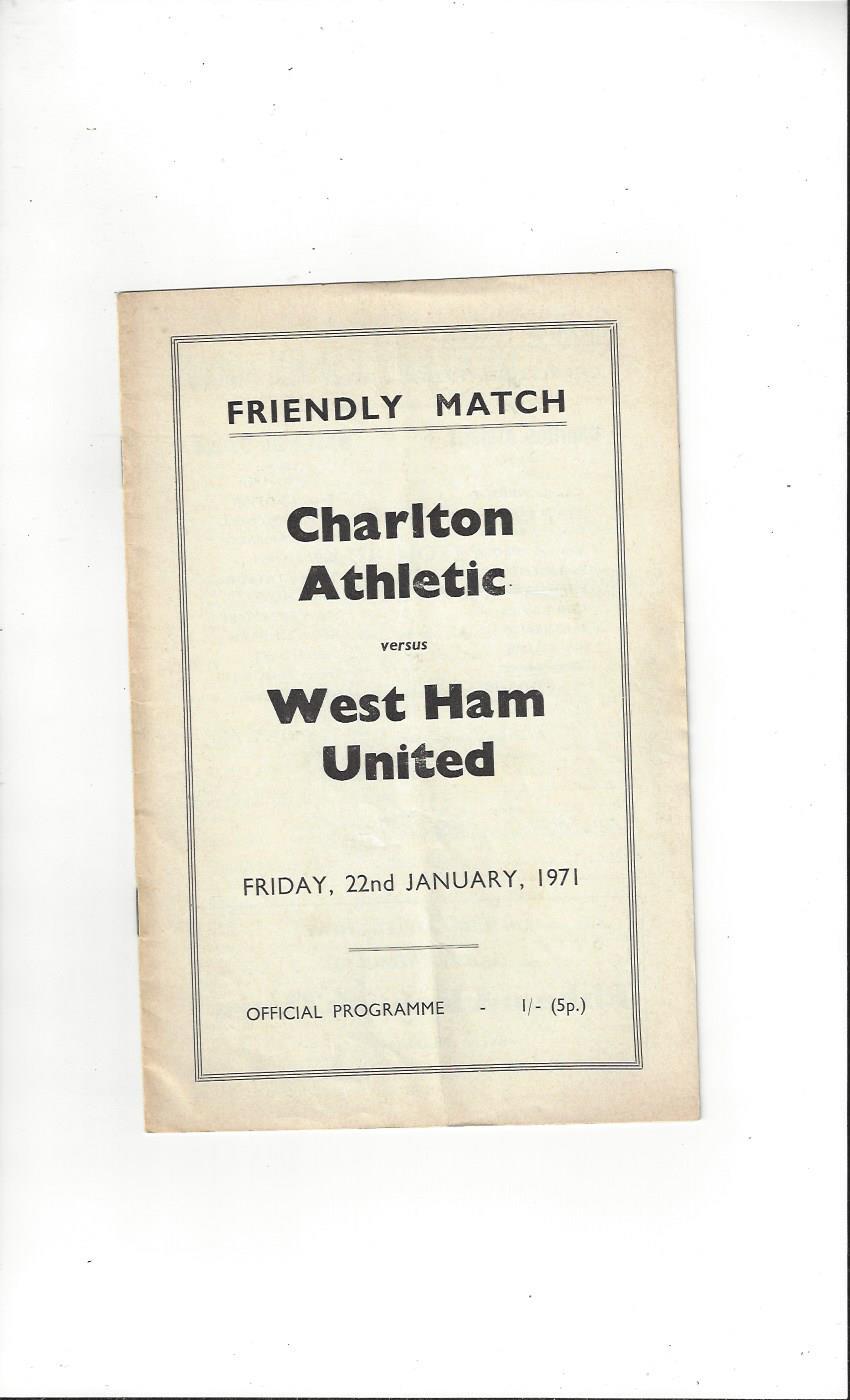 Charlton Athletic v West Ham United Friendly Football Programme 1970/71