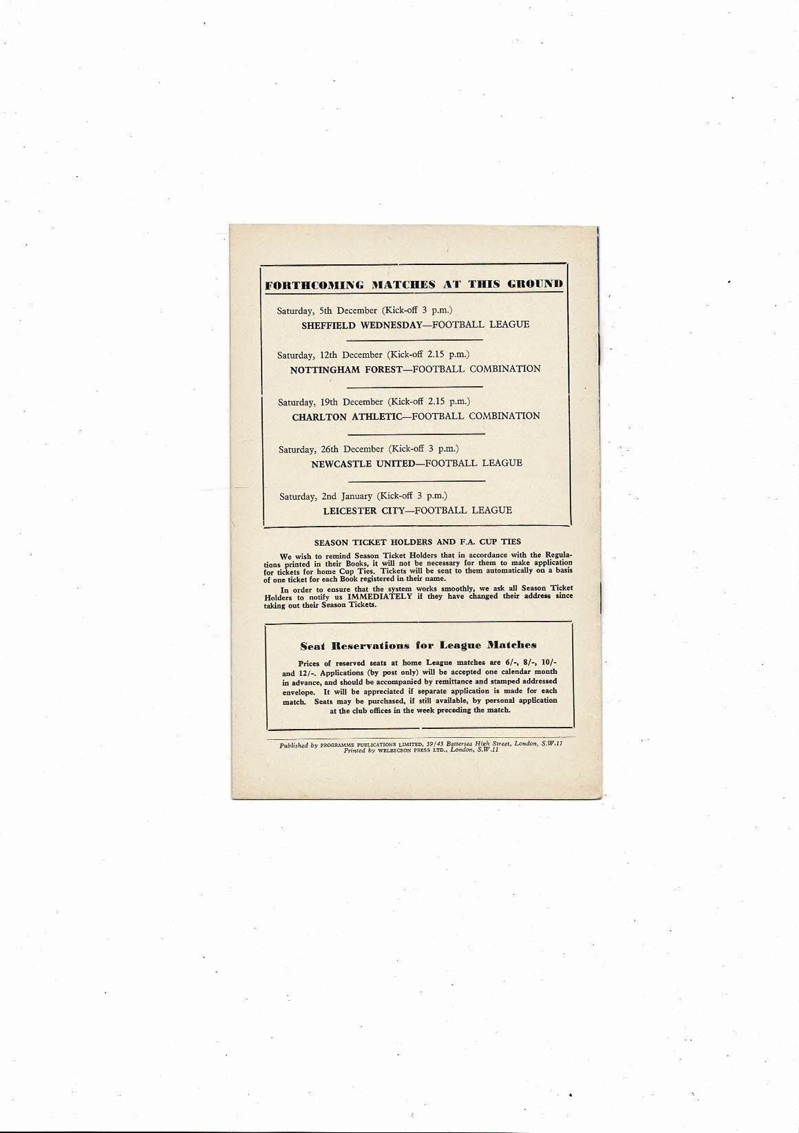 Chelsea v Atletico Bilbao Friendly Football Programme 1959/60