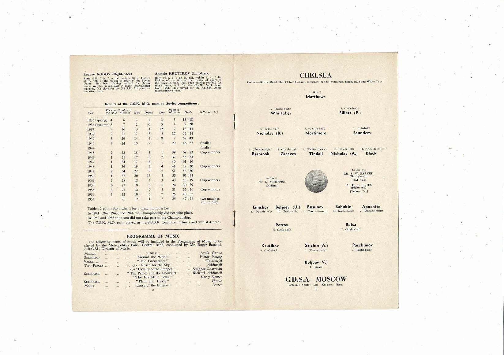Chelsea v CDSA Moscow Friendly Football Programme 1957/58