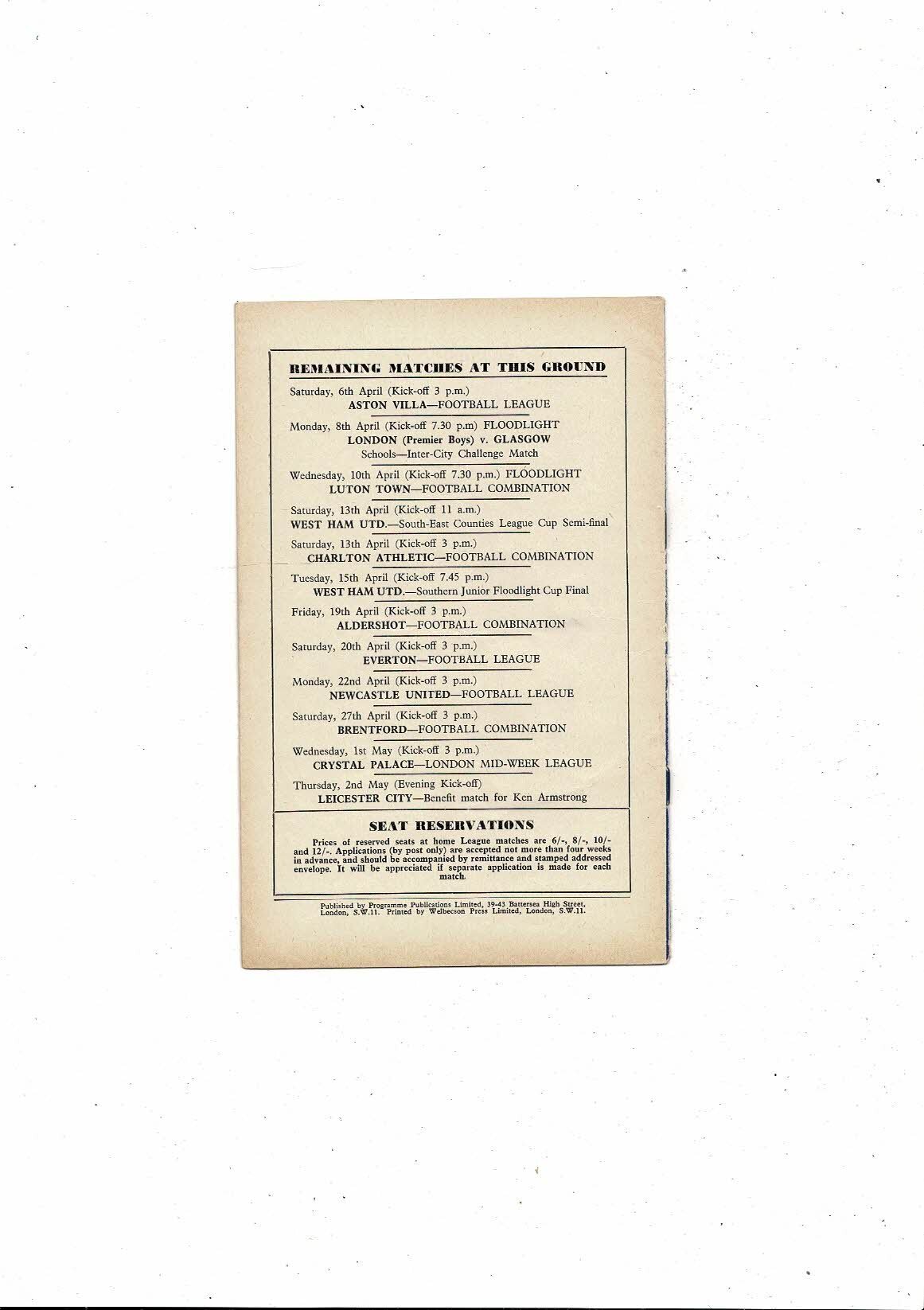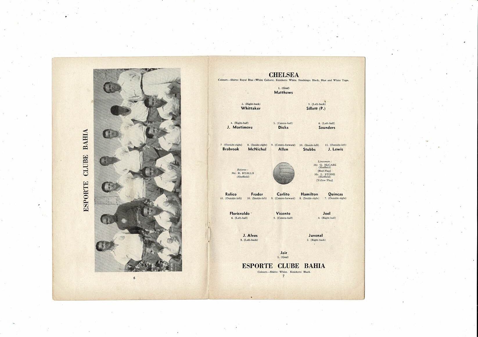 Chelsea v Esporte Clube Bahia Friendly Football Programme 1956/57