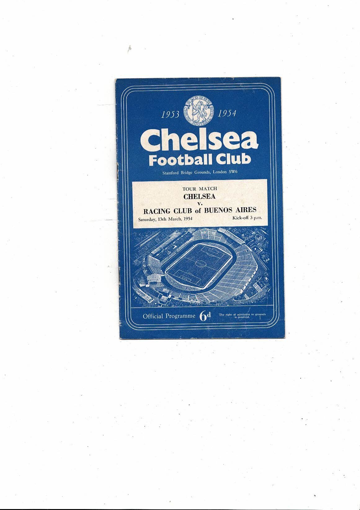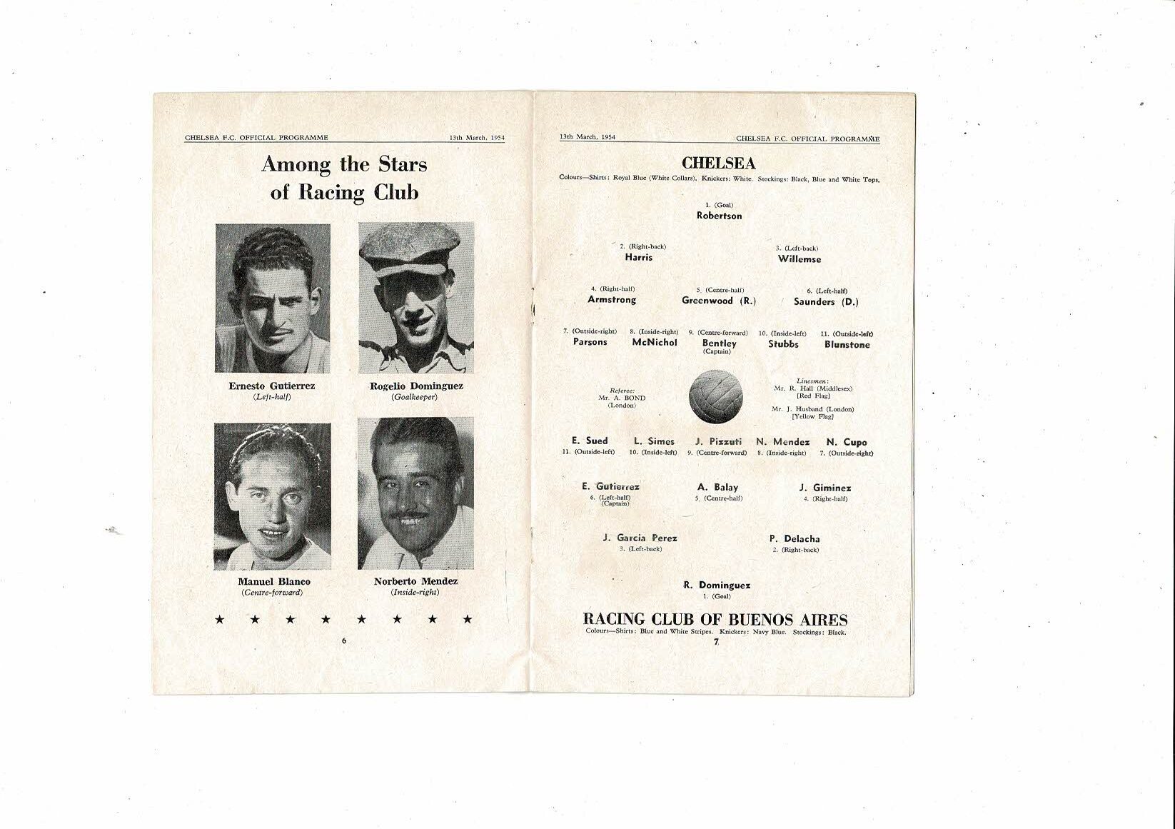 Chelsea v Racing Club Friendly Football Programme 1953/54