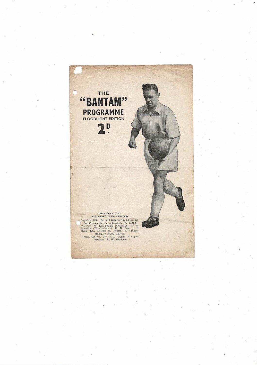 This Original 4 page Football Programme is creased & folded with some staining/ discolouration, tear on front cover, several tiny nic's & punch holes. No handwriting. Please see scans.
