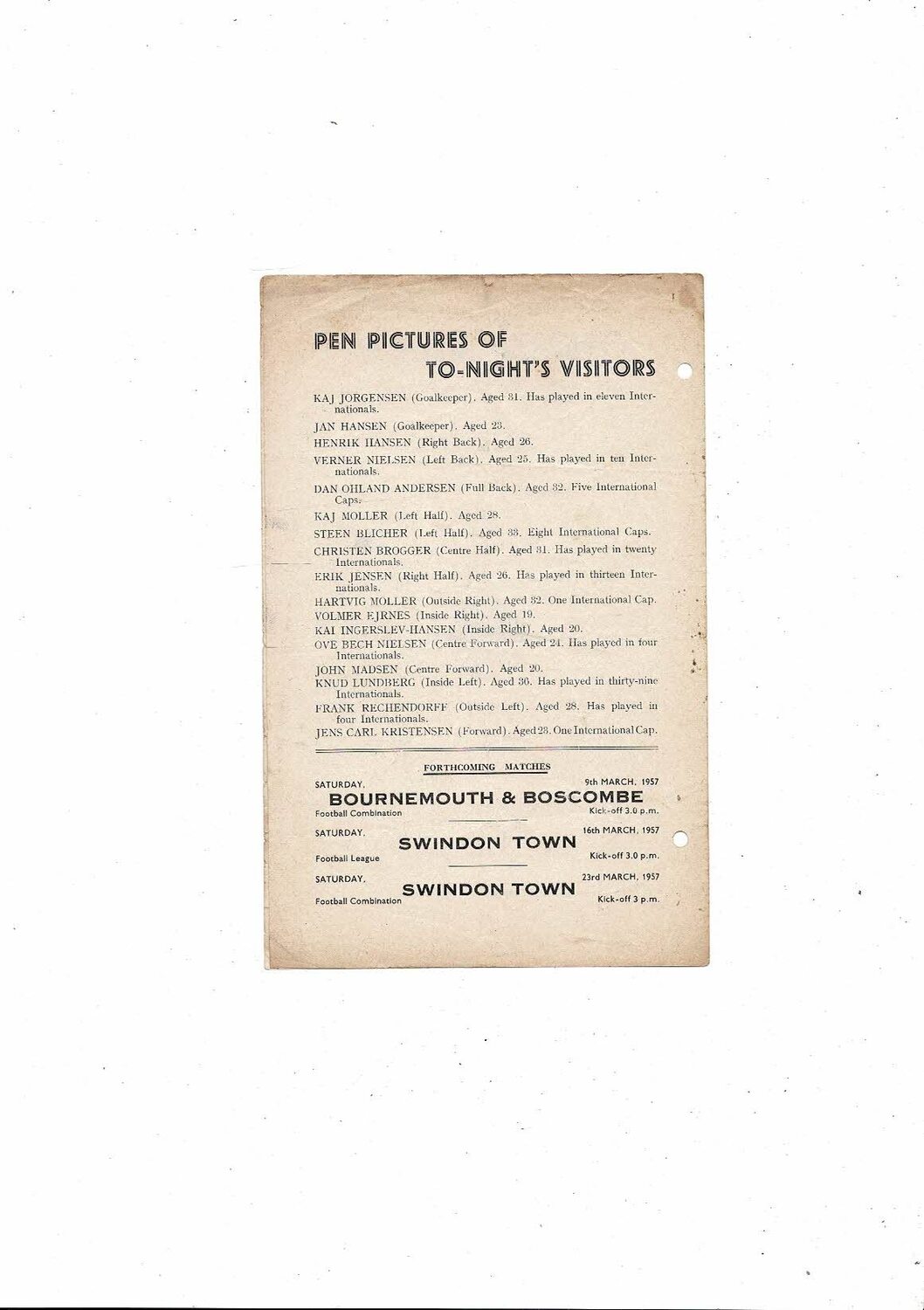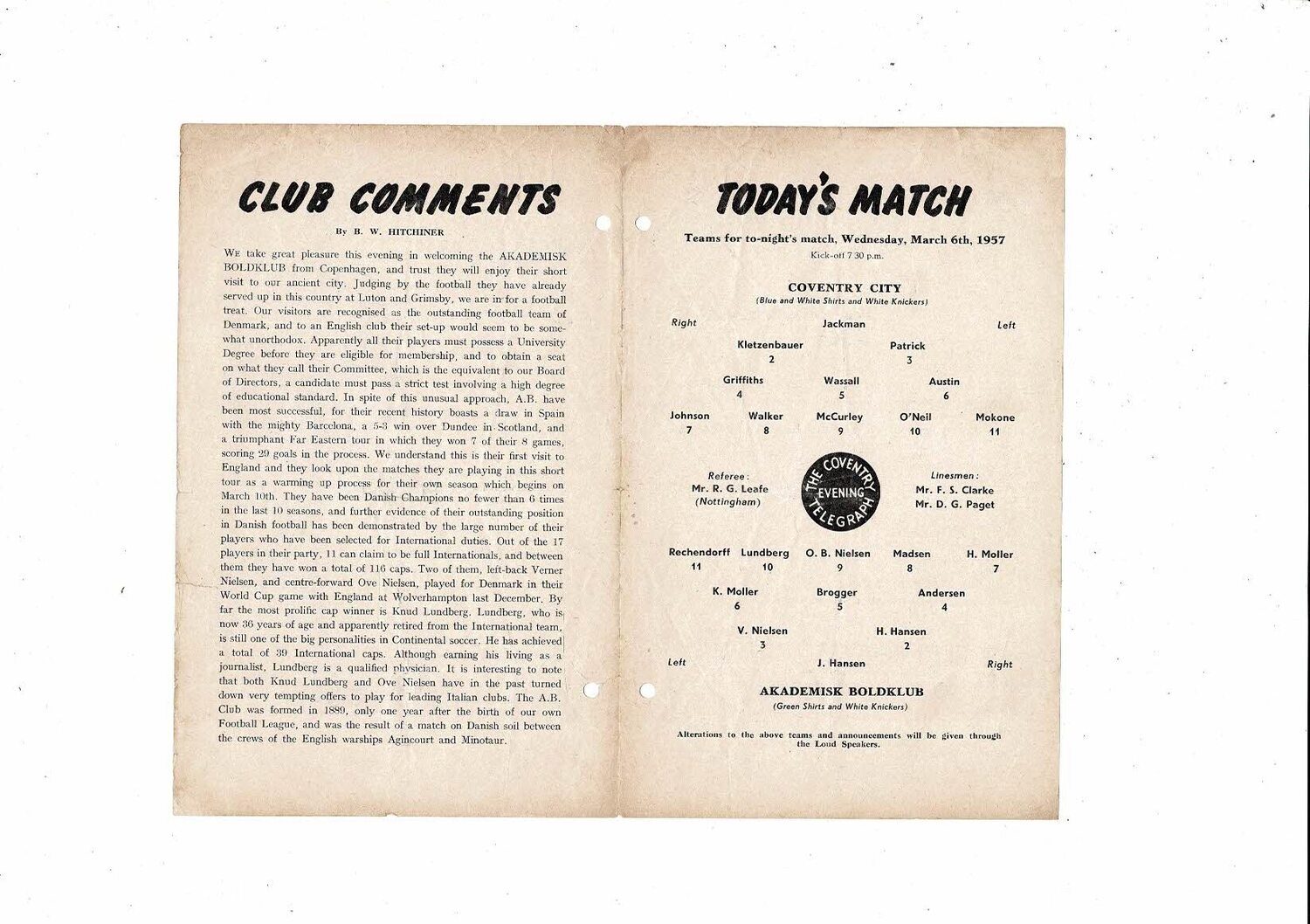 Coventry City v Akademisk Boldklub Friendly Football Programme 1956/57