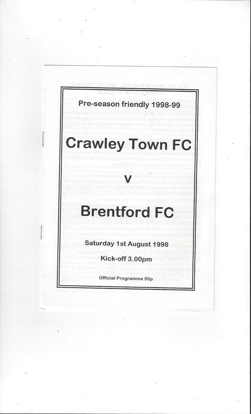 Crawley Town v Brentford Friendly Football Programme 1998/99