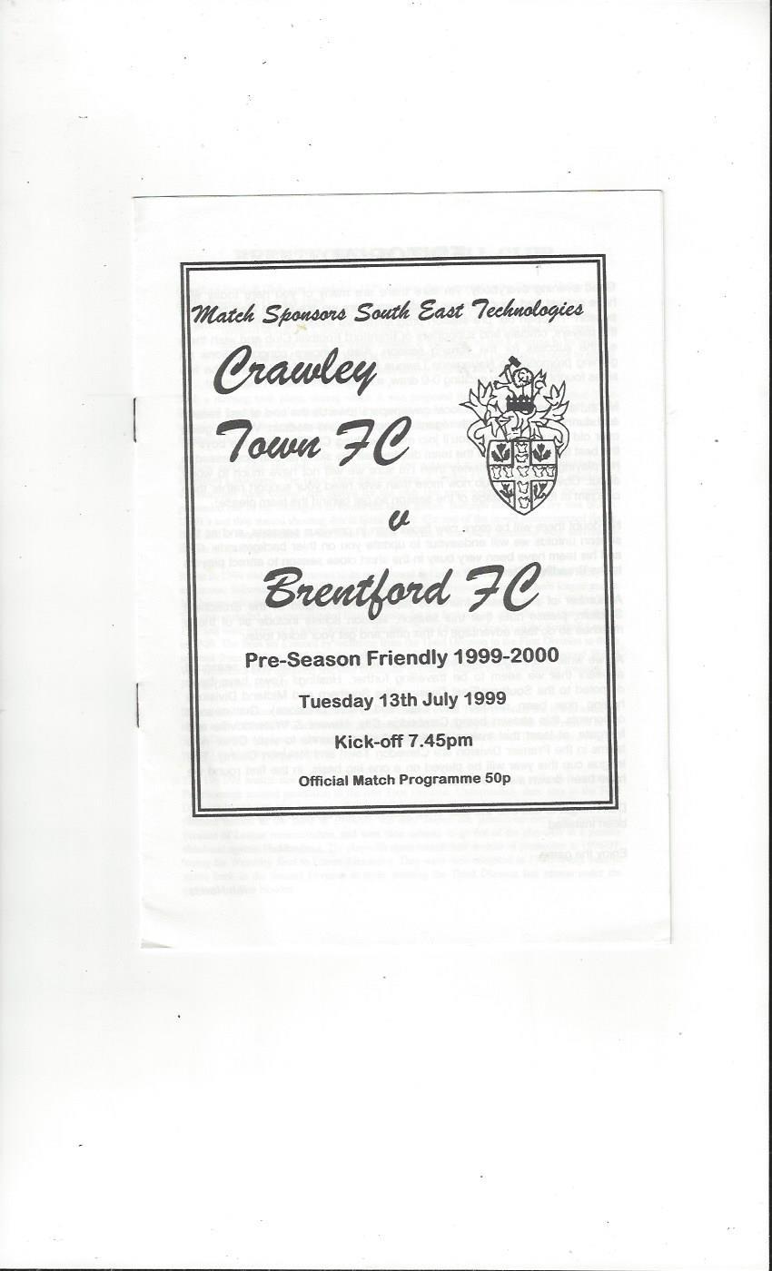 Crawley Town v Brentford Friendly Football Programme 1999/00