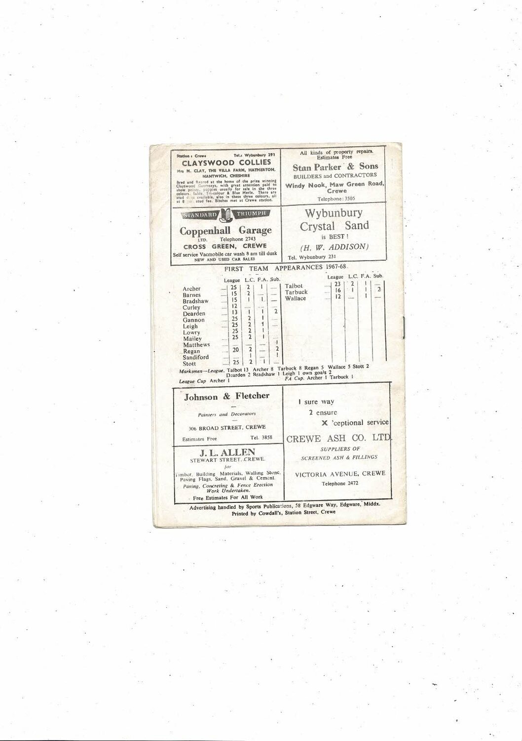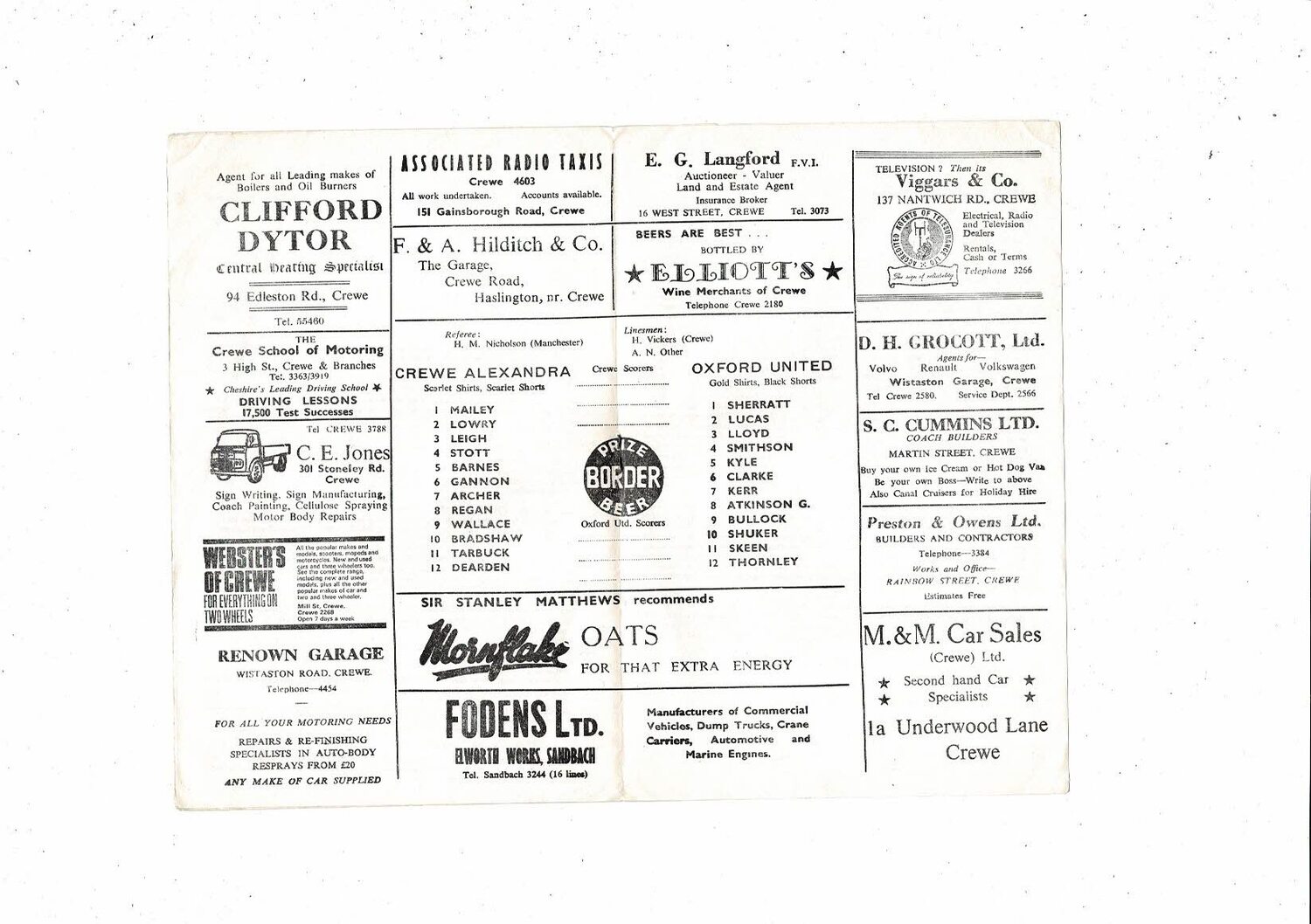 Crewe Alexandra v Oxford United Friendly Football Programme 1967/68