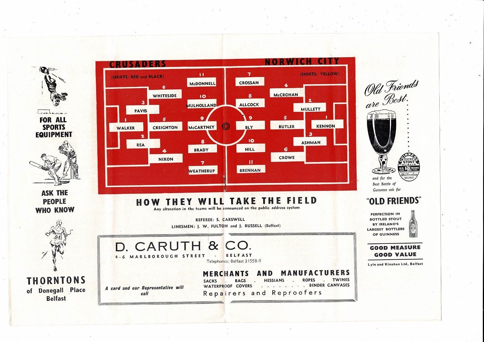 Crusaders v Norwich City Friendly Football Programme 1958/59