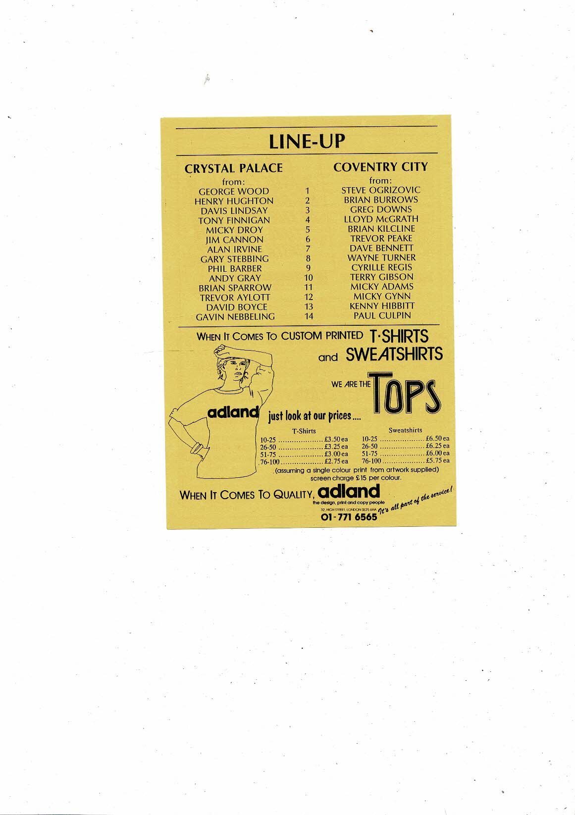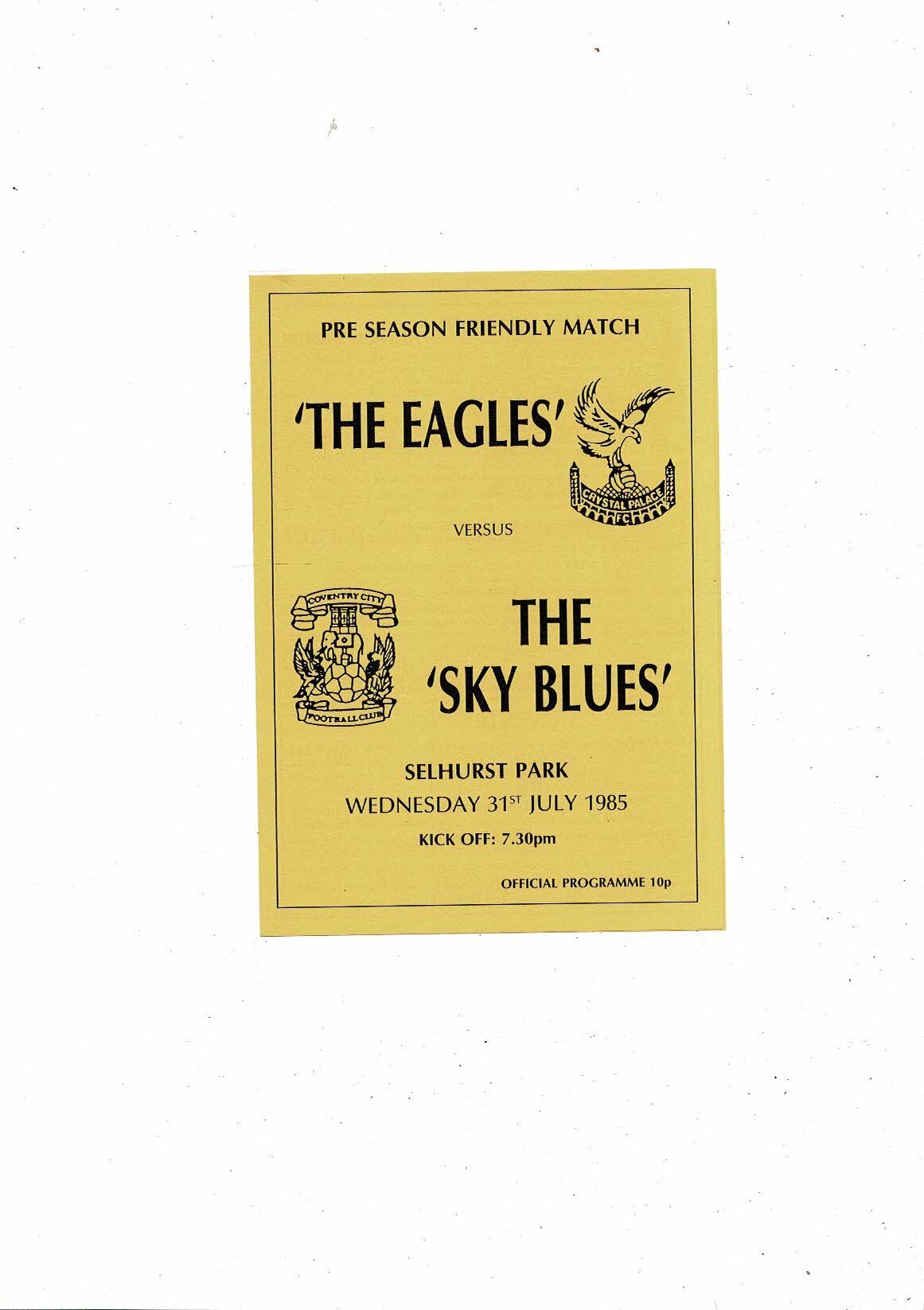 Crystal Palace v Coventry City Friendly Football Programme 1985/86