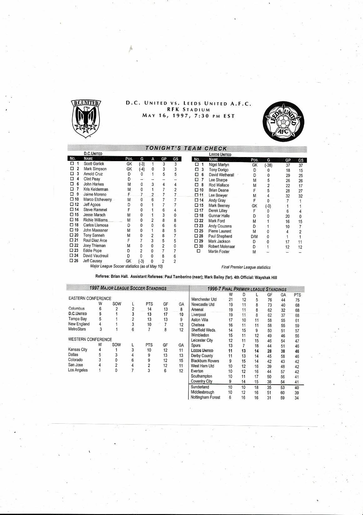 D.C. United v Leeds United Friendly Football Programme 1996/97
