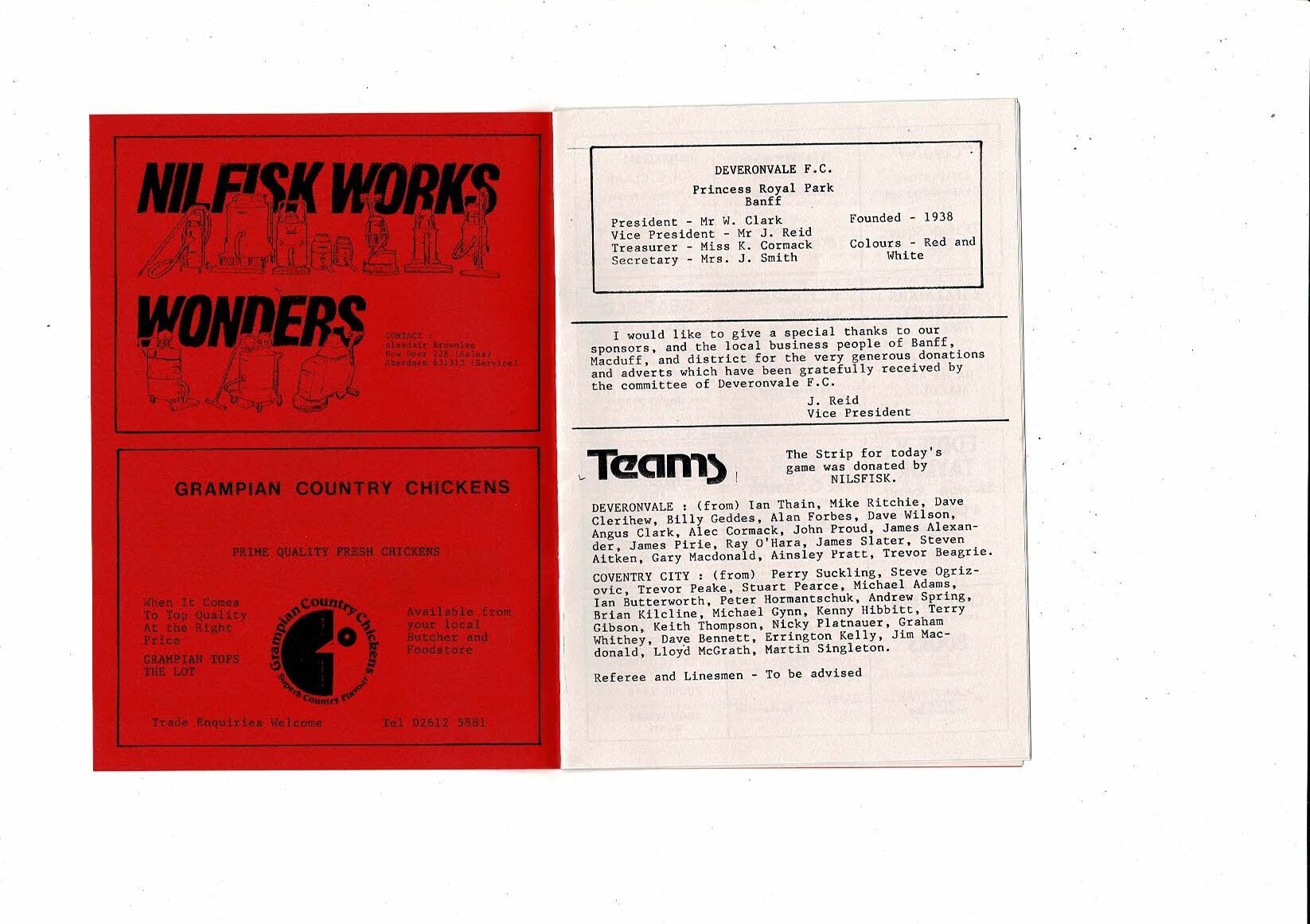 Deveronvale v Coventry City Friendly Football Programme 1984/85