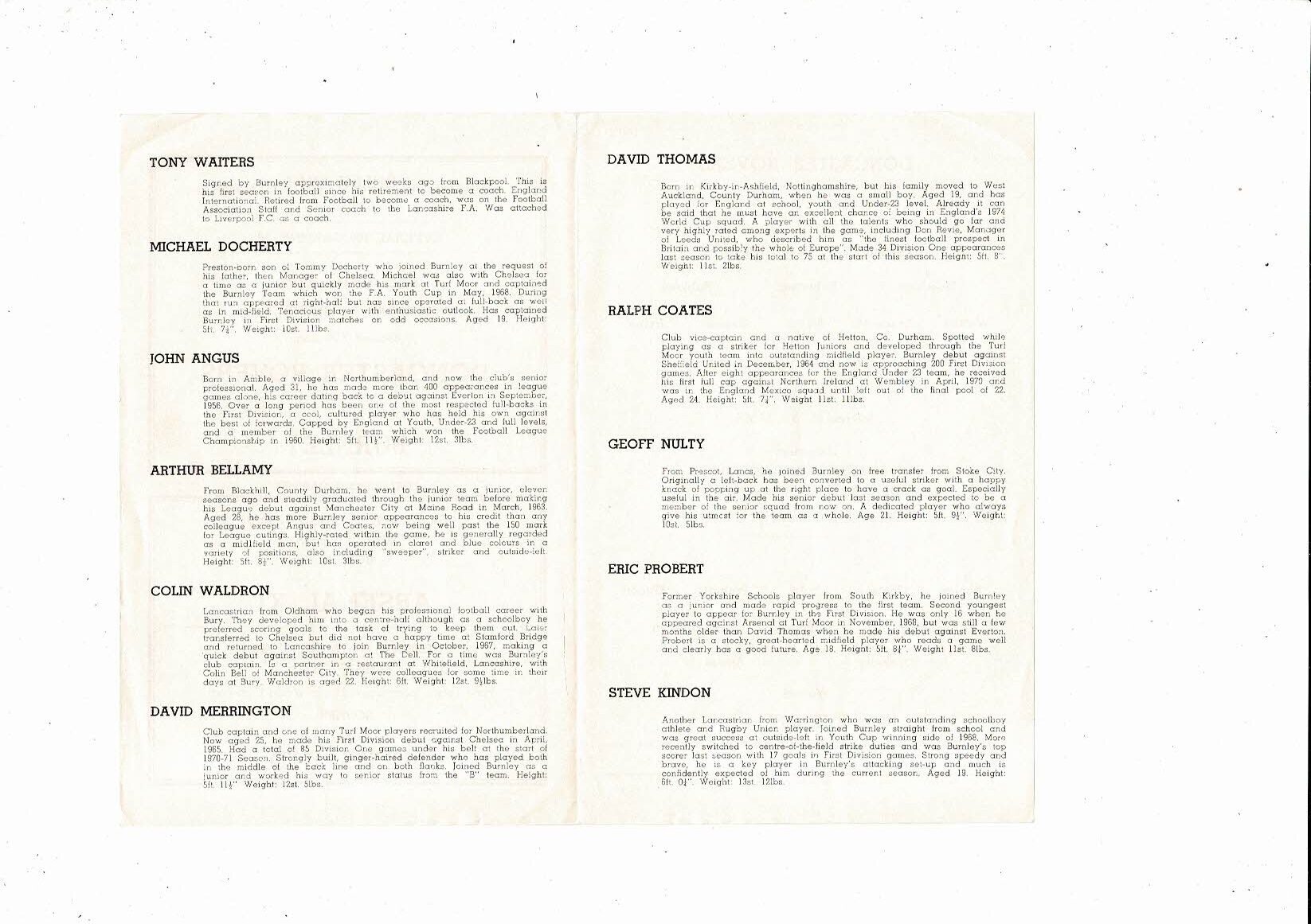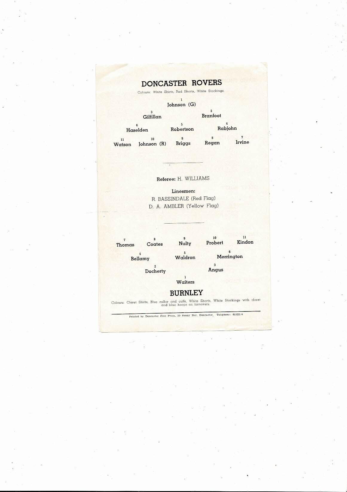 Doncaster Rovers v Burnley Friendly Football Programme 1970/71