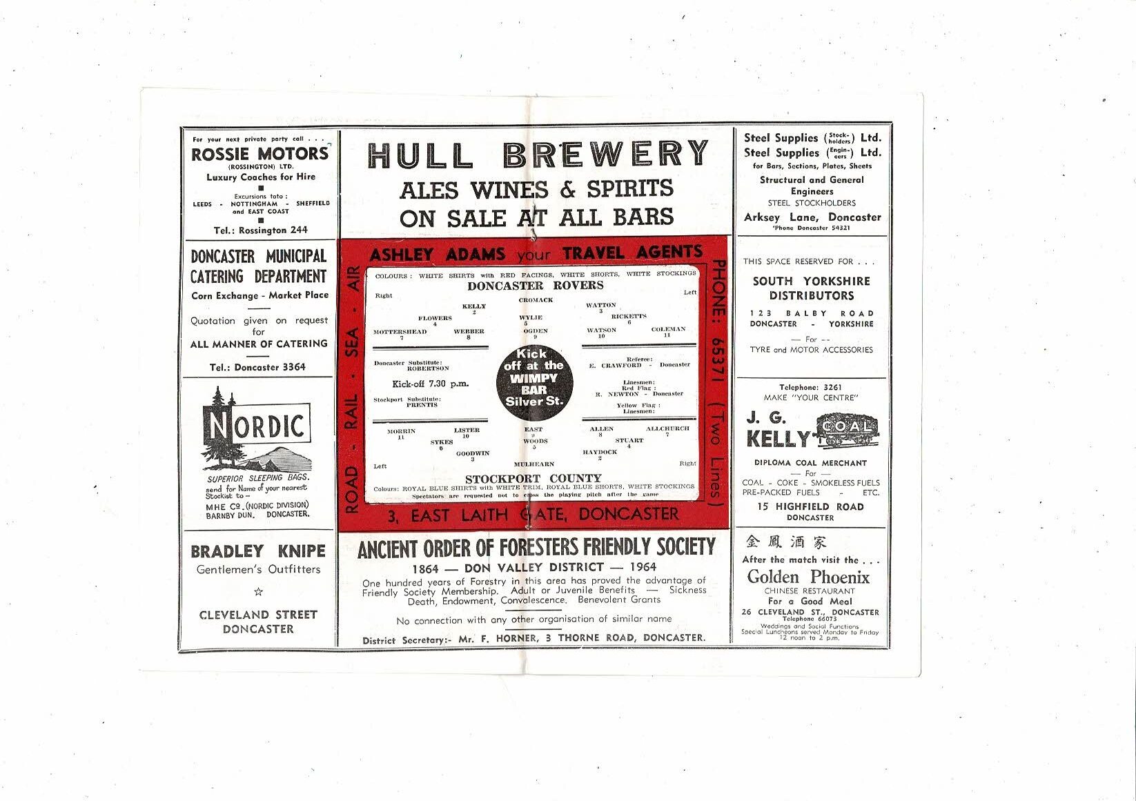 Doncaster Rovers v Stockport County Friendly Football Programme 1966/67