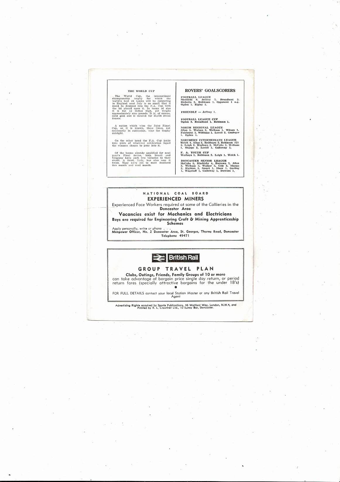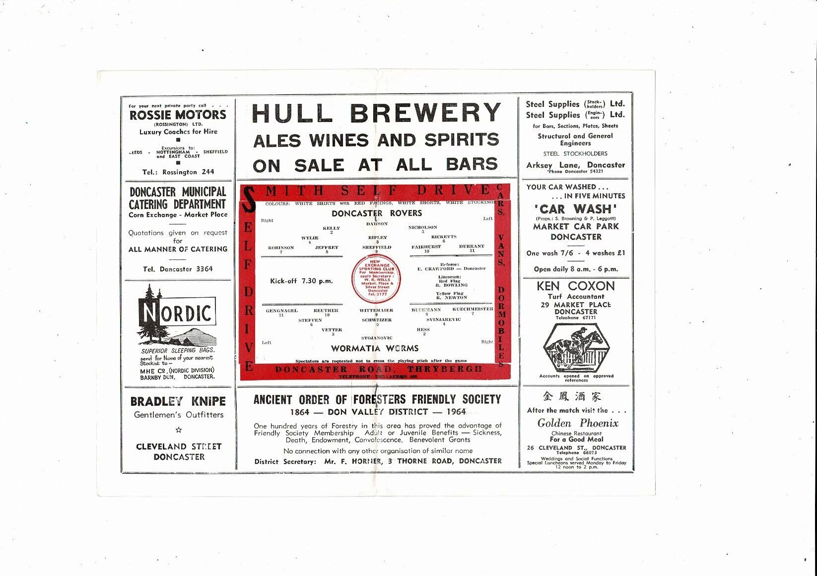 Doncaster Rovers v Wormatia Worms Friendly Football Programme 1965/66