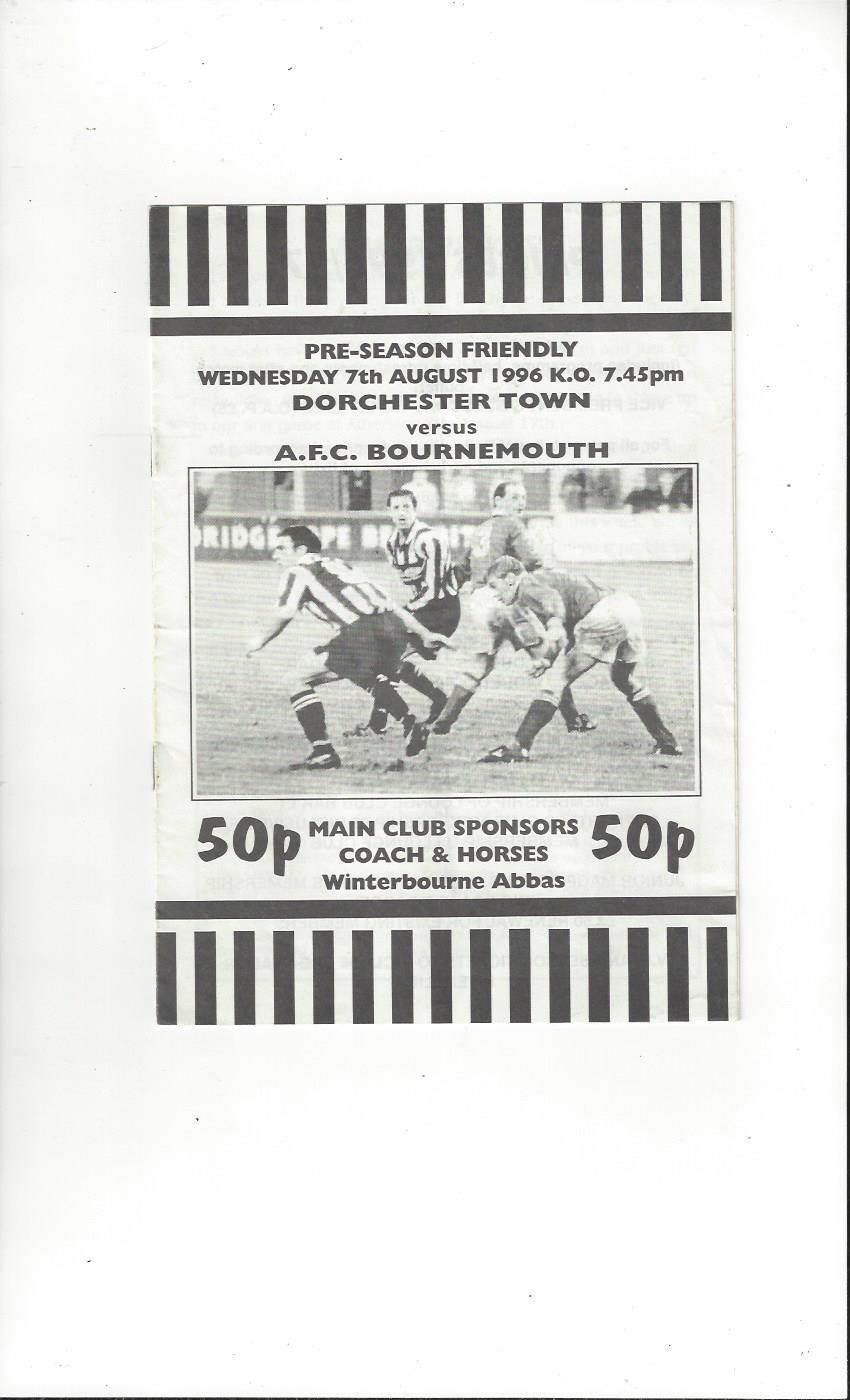 Dorchester Town v Bournemouth Friendly Football Programme 1996/97