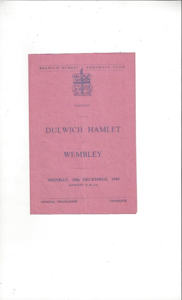 Dulwich Hamlet v Wembley Friendly Football Programme 1949/50