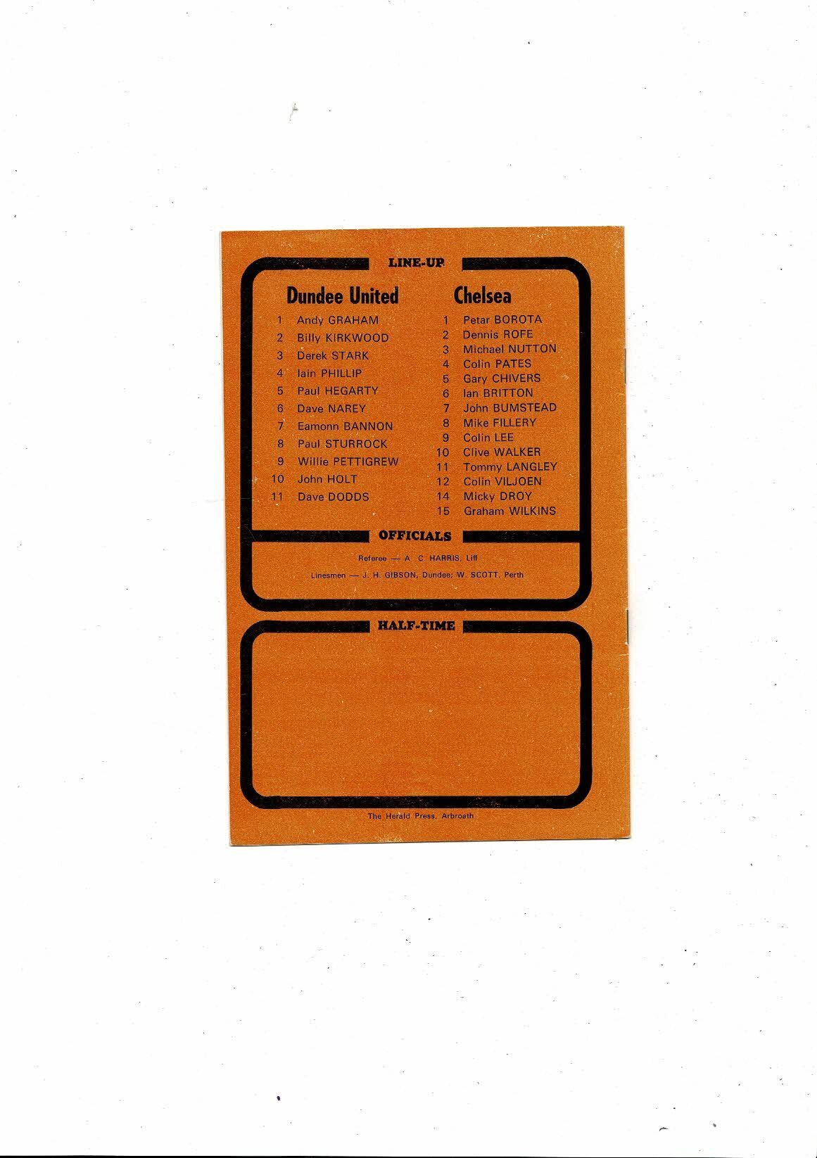 Dundee United v Chelsea Friendly Football Programme 1980/81