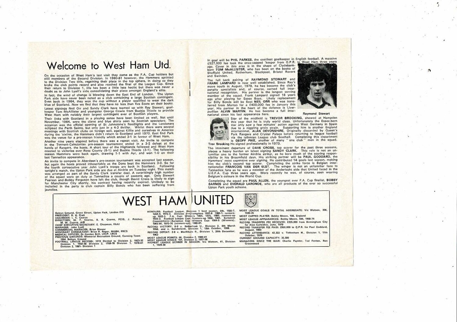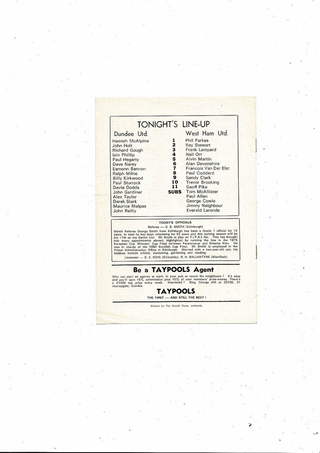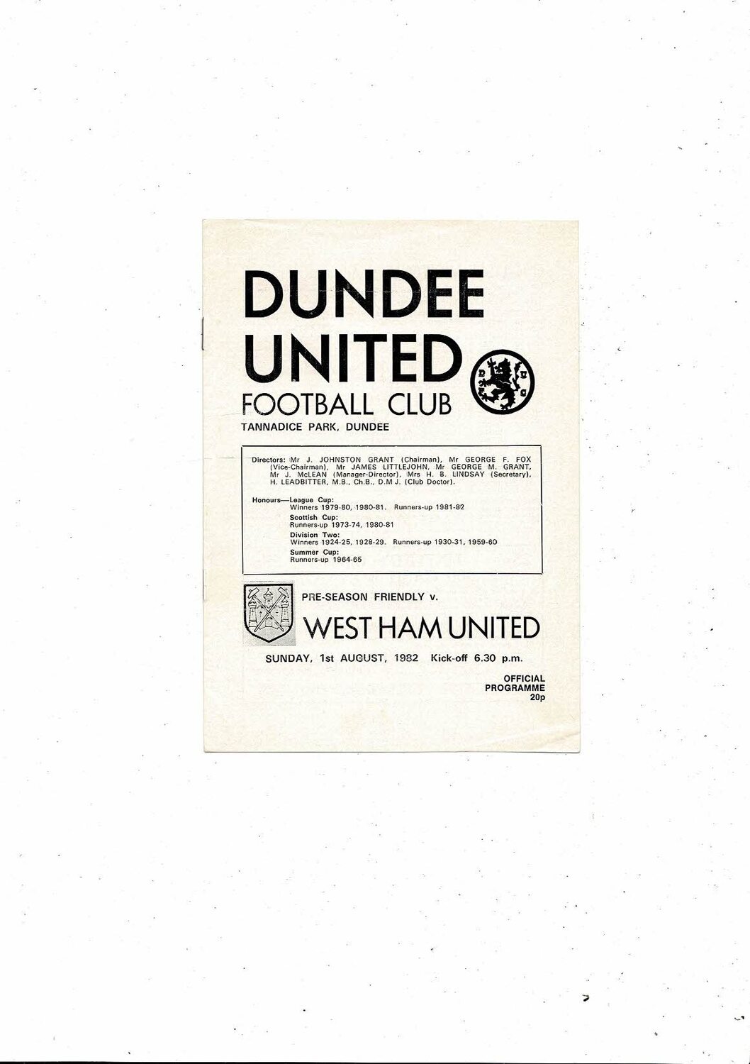 Dundee United v West Ham United Friendly Football Programme 1982/83