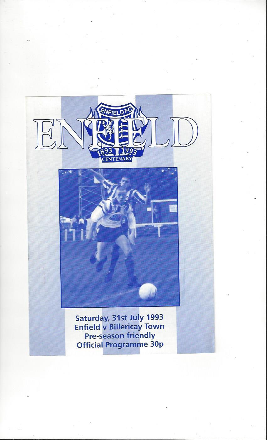 Enfield v Billericay Friendly Football Programme 1993/94