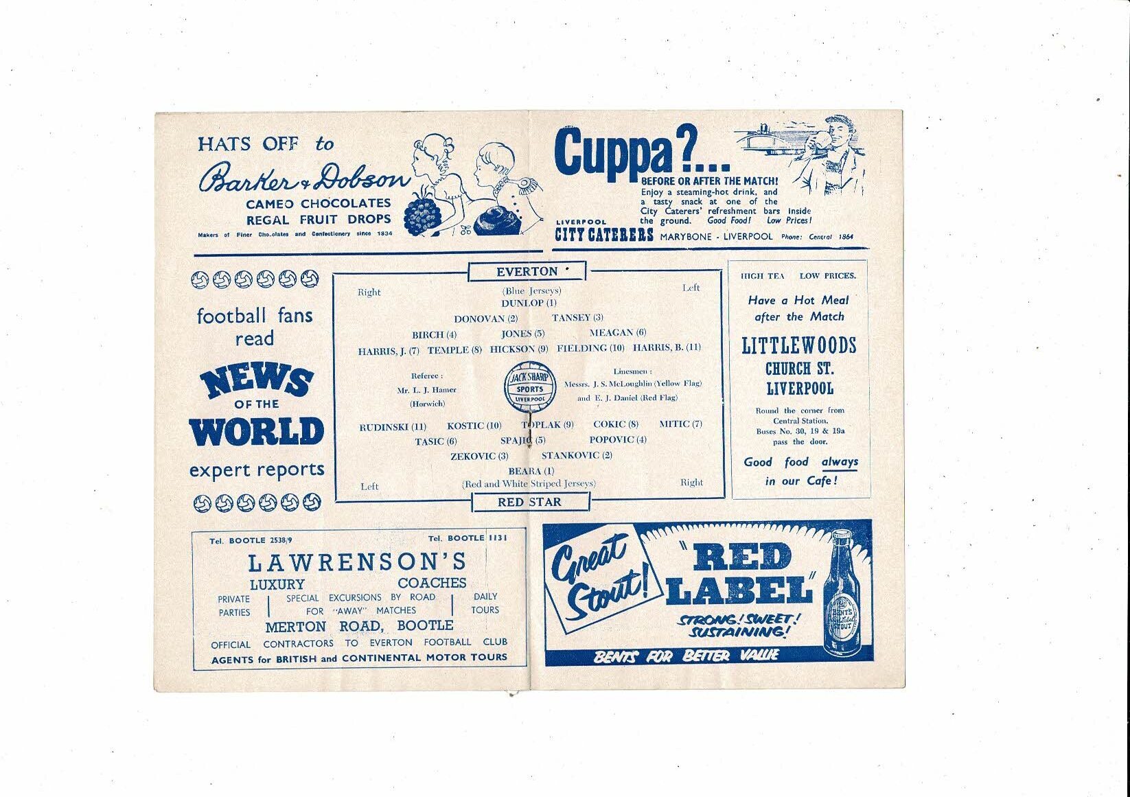 Everton v Red Star Friendly Football Programme 1957/58