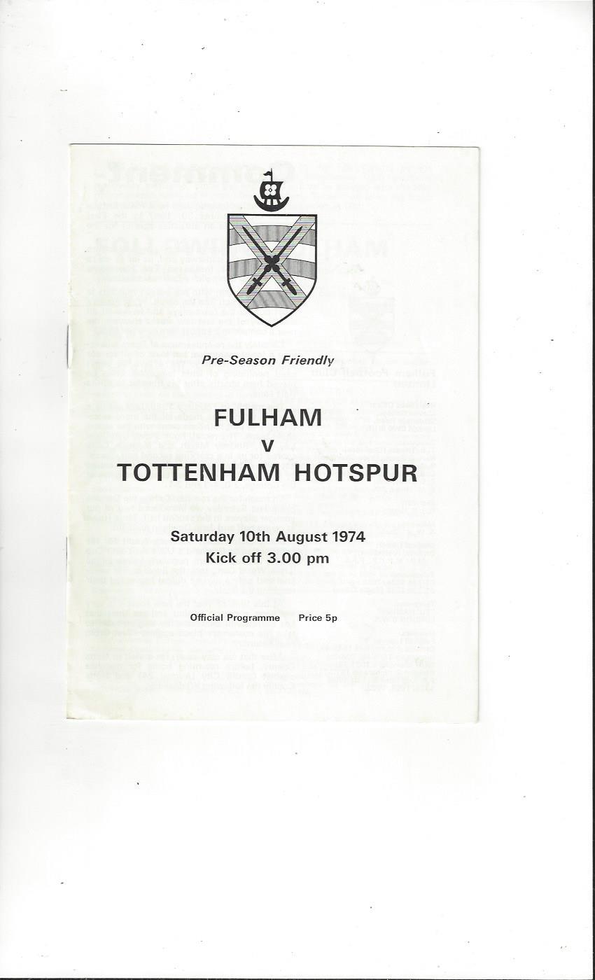 Fulham v Tottenham Hotspur Friendly Football Programme 1974/75