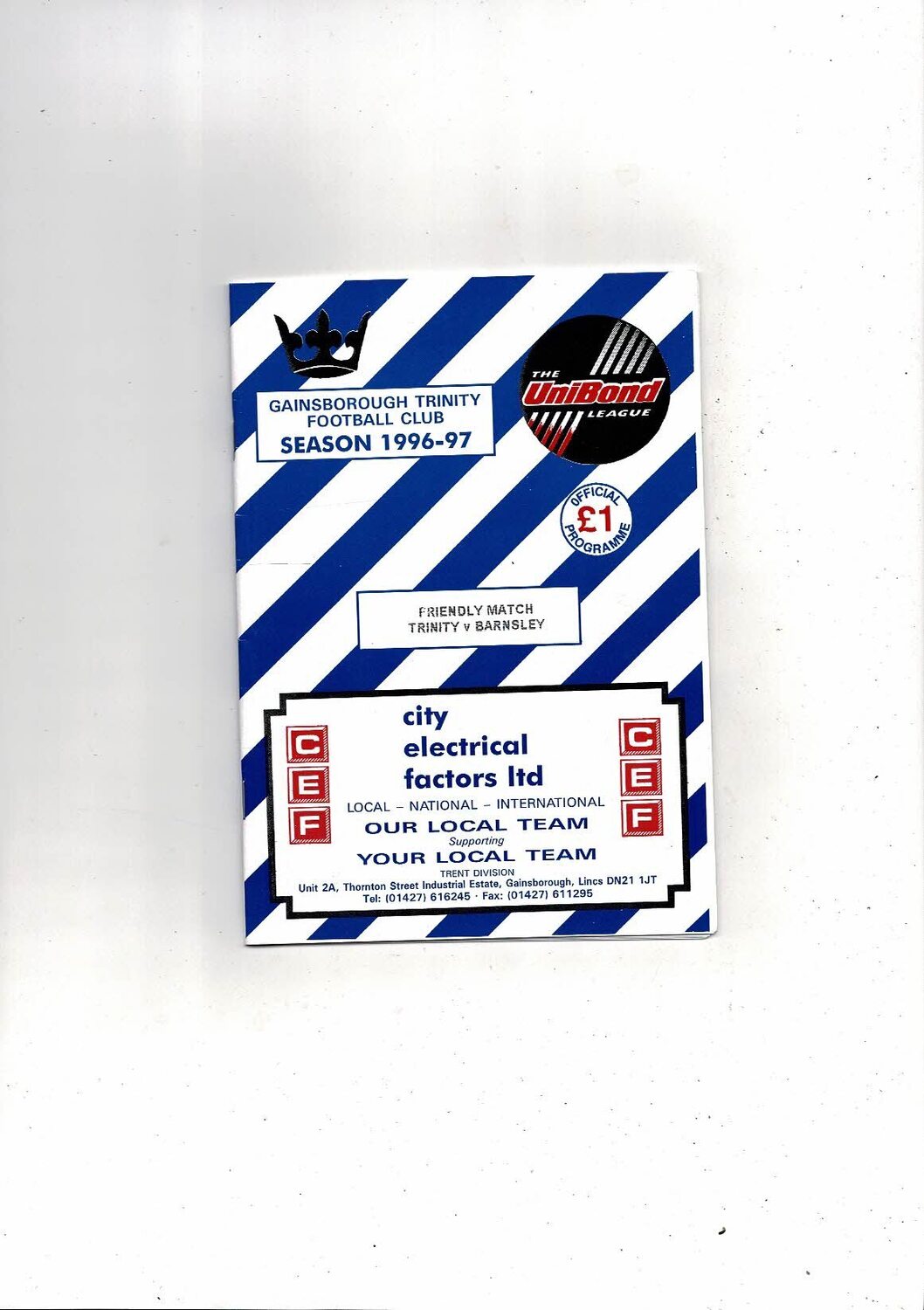 Gainsborough Trinity v Barnsley Friendly Football Programme 1996/97 July 30th