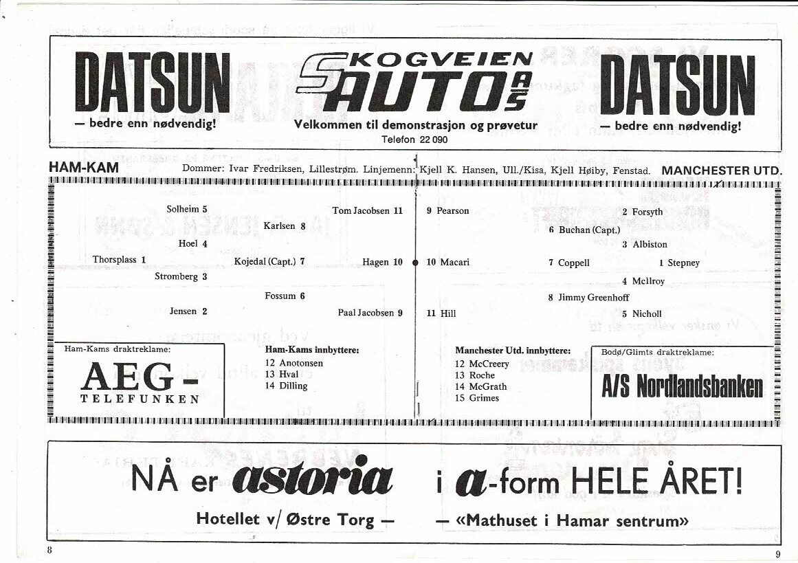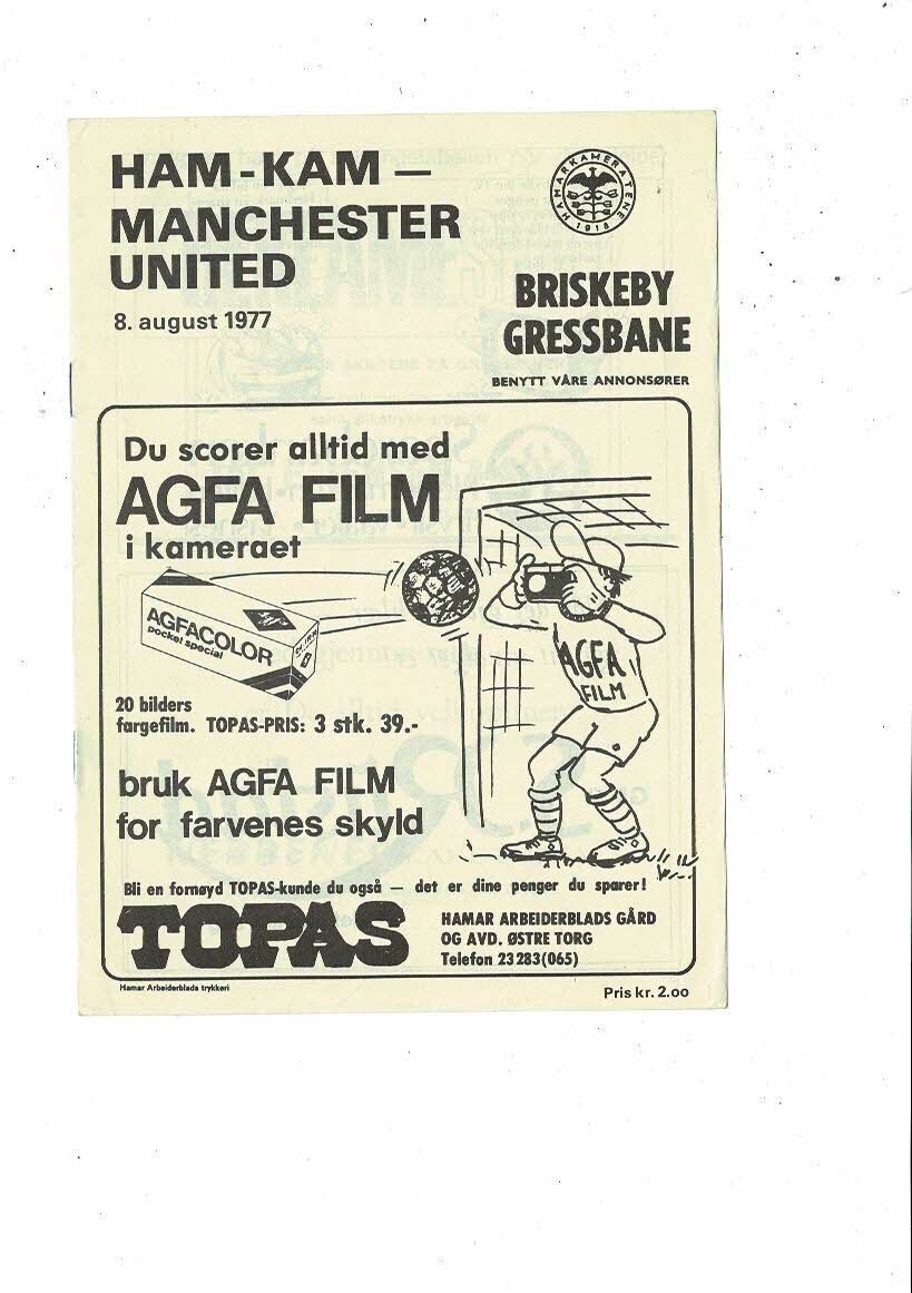 HAM - KAM v Manchester United Friendly Football Programme 1977/78