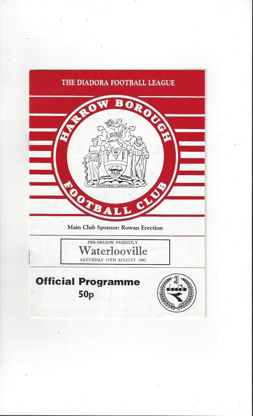 Harrow Borough v Waterlooville Friendly Football Programme 1992/93