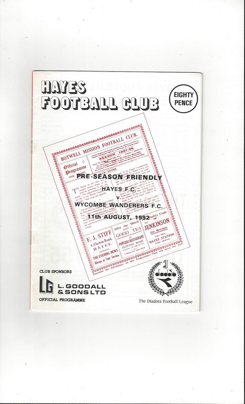 Hayes v Wycombe Wanderers Friendly Football Programme 1992/93