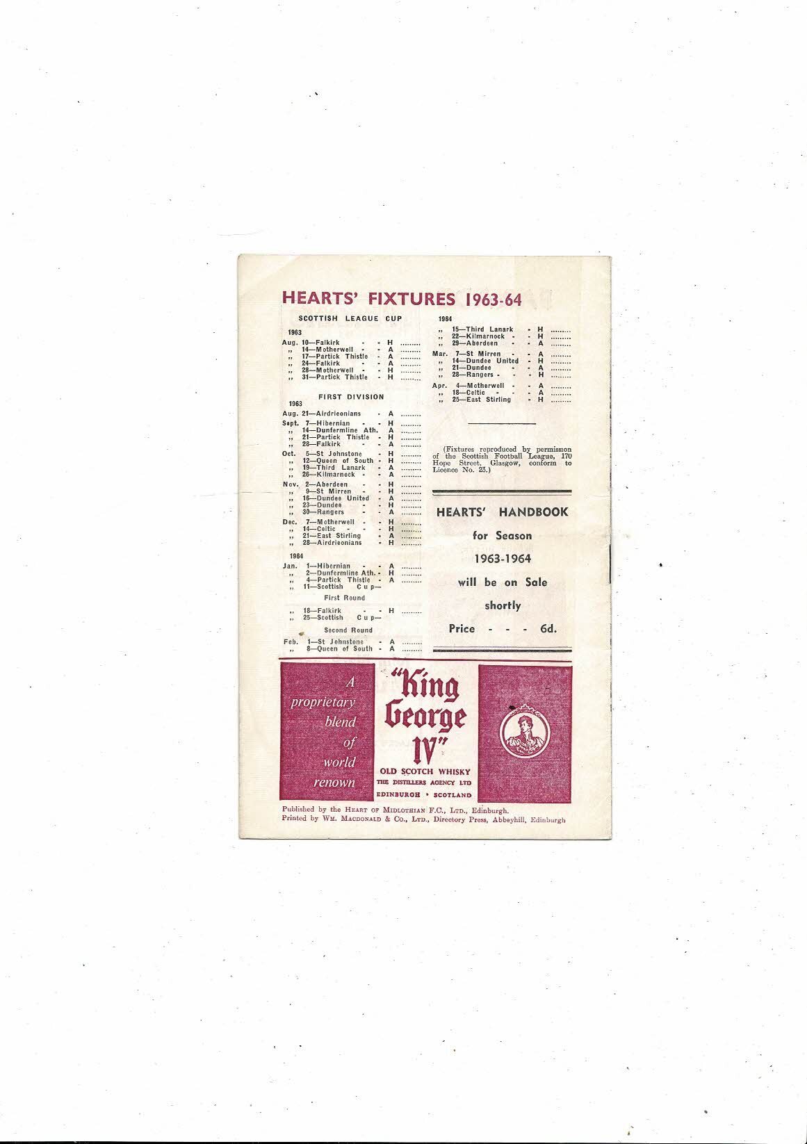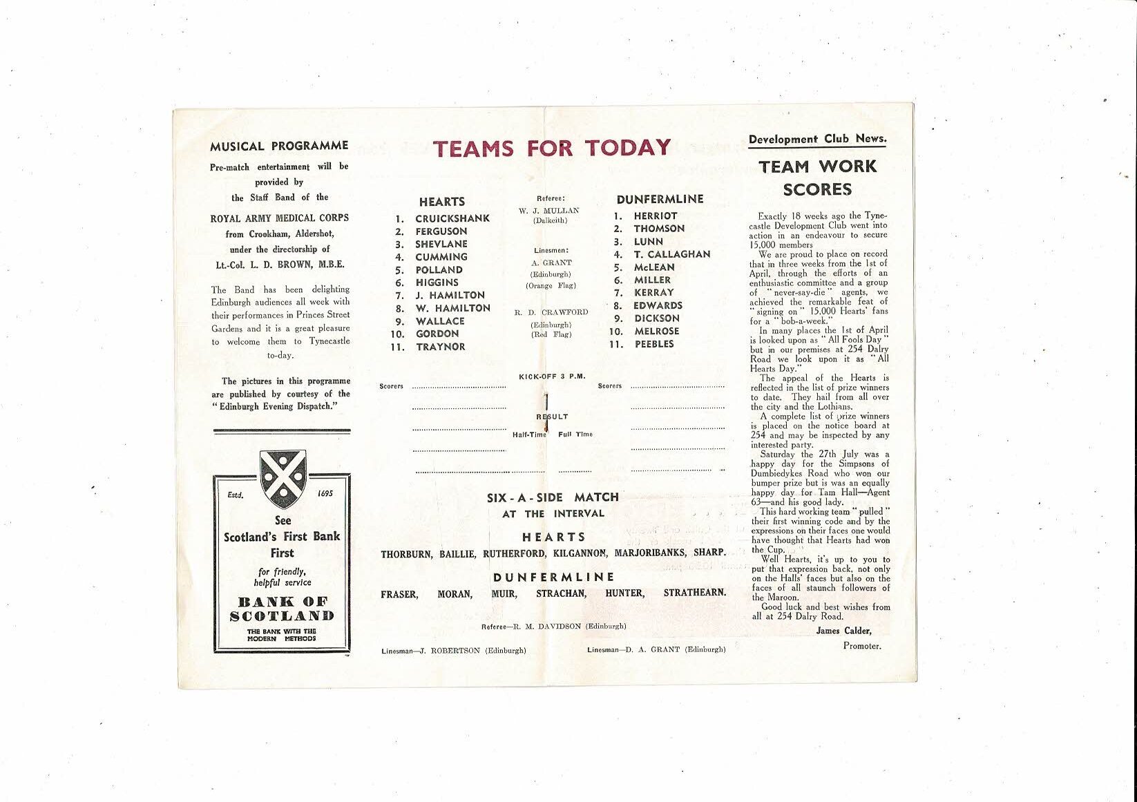 Hearts v Dunfermline Athletic Friendly Football Programme 1963/64