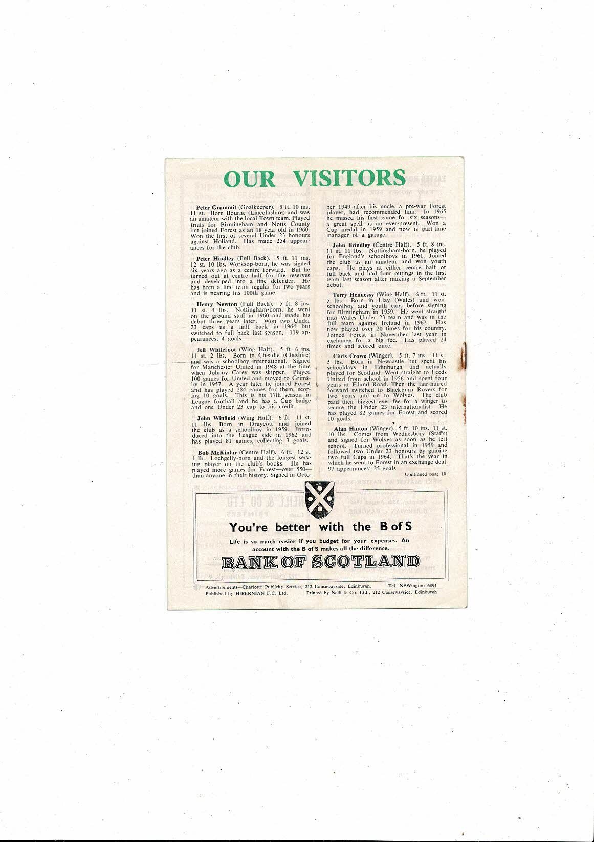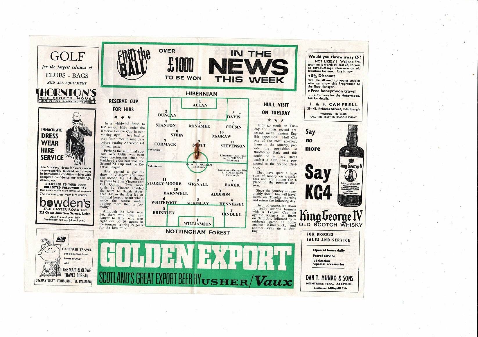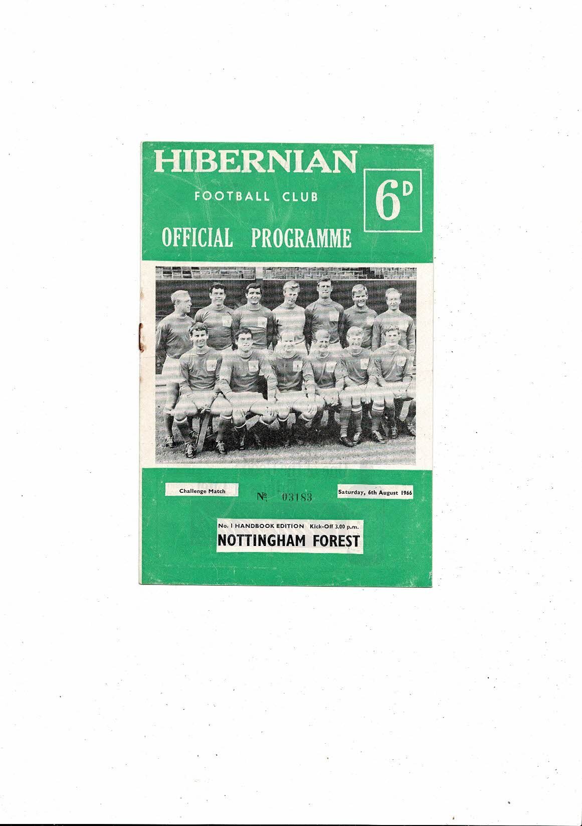 Hibernian v Nottingham Forest Friendly Football Programme 1966/67