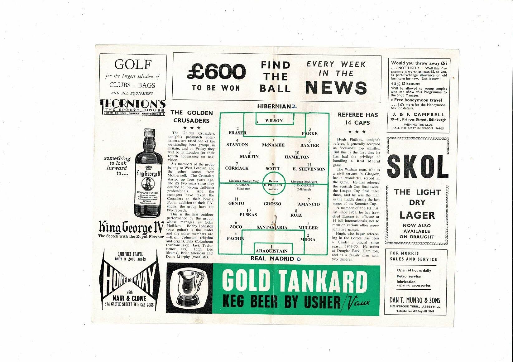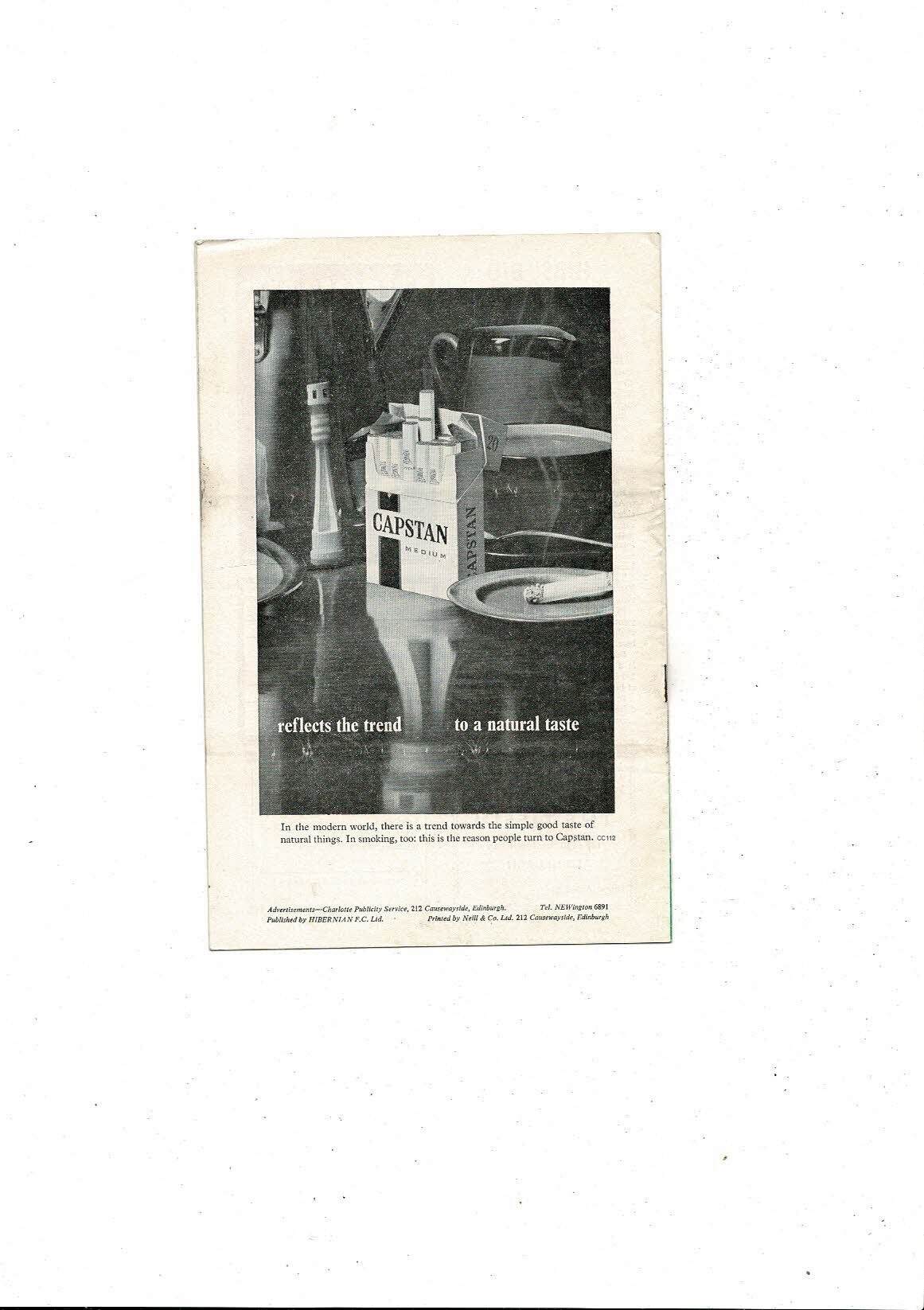 Hibernian v Real Madrid Friendly Football Programme 1964/65