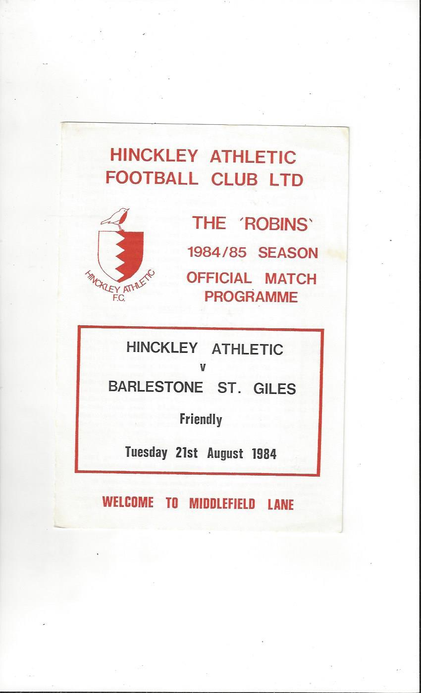 Hinckley Athletic v Balestone St. Giles Friendly Football Programme 1984/85