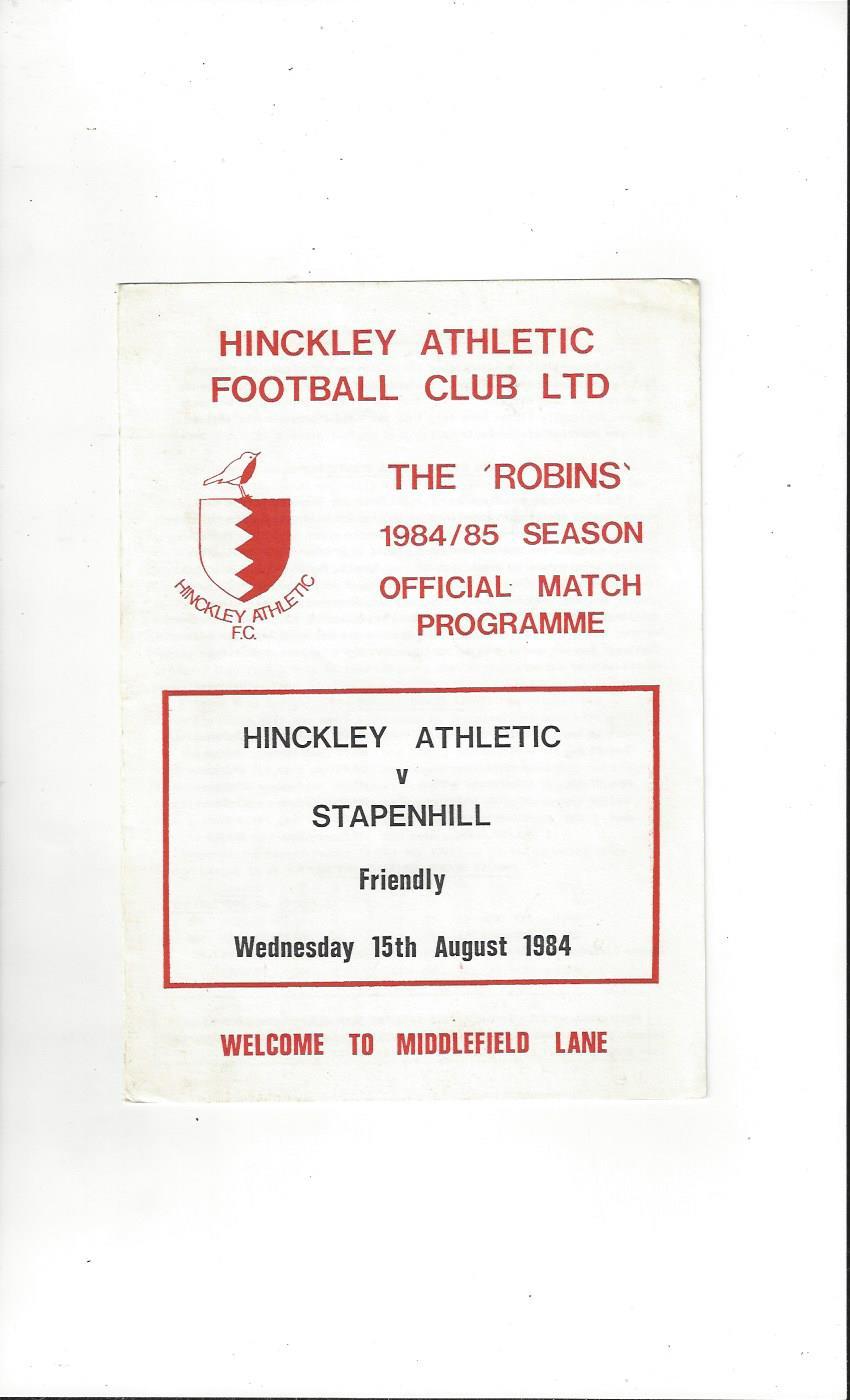 Hinckley Athletic v Stapenhill Friendly Football Programme 1984/85